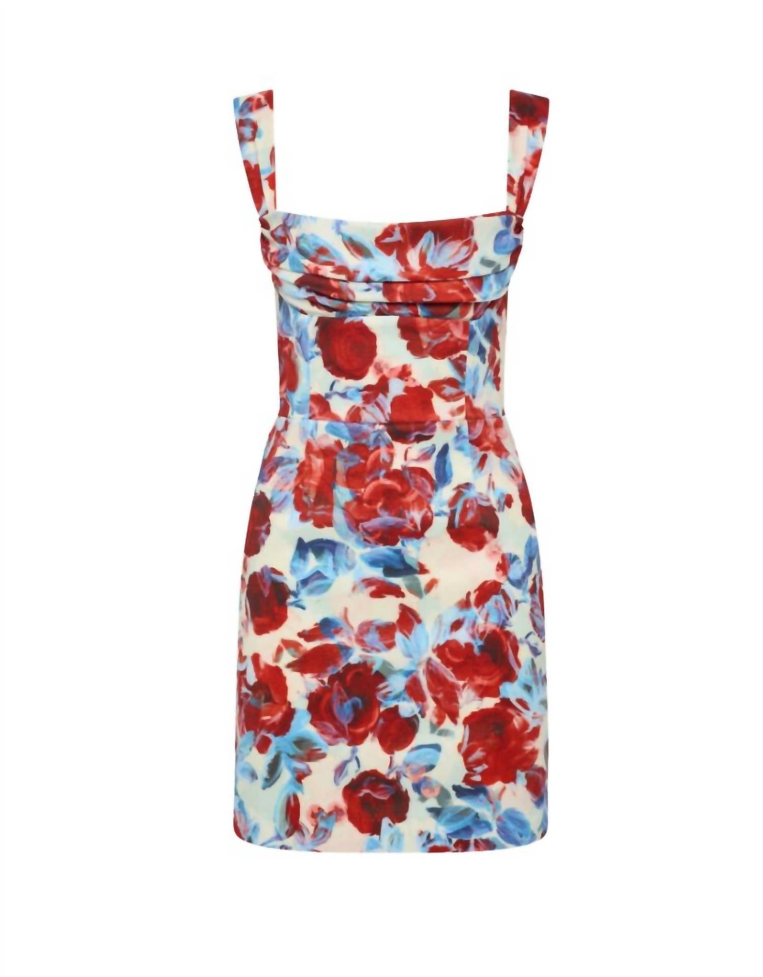 The kind of easy and flattering dress you'll be reaching for all season long. Step out in style with the Fleurette Mini Dress by REBECCA VALLANCE, a chic addition to any wardrobe. This sleeveless bodycon features a scoop neck and an eye-catching all-over floral print in striking Poppy Red. Crafted from polyester, it offers a comfortable fit with a secure rear zip fastening. Perfect for a cocktail party, this dress demands attention and should be dry cleaned to maintain its vibrant appeal.