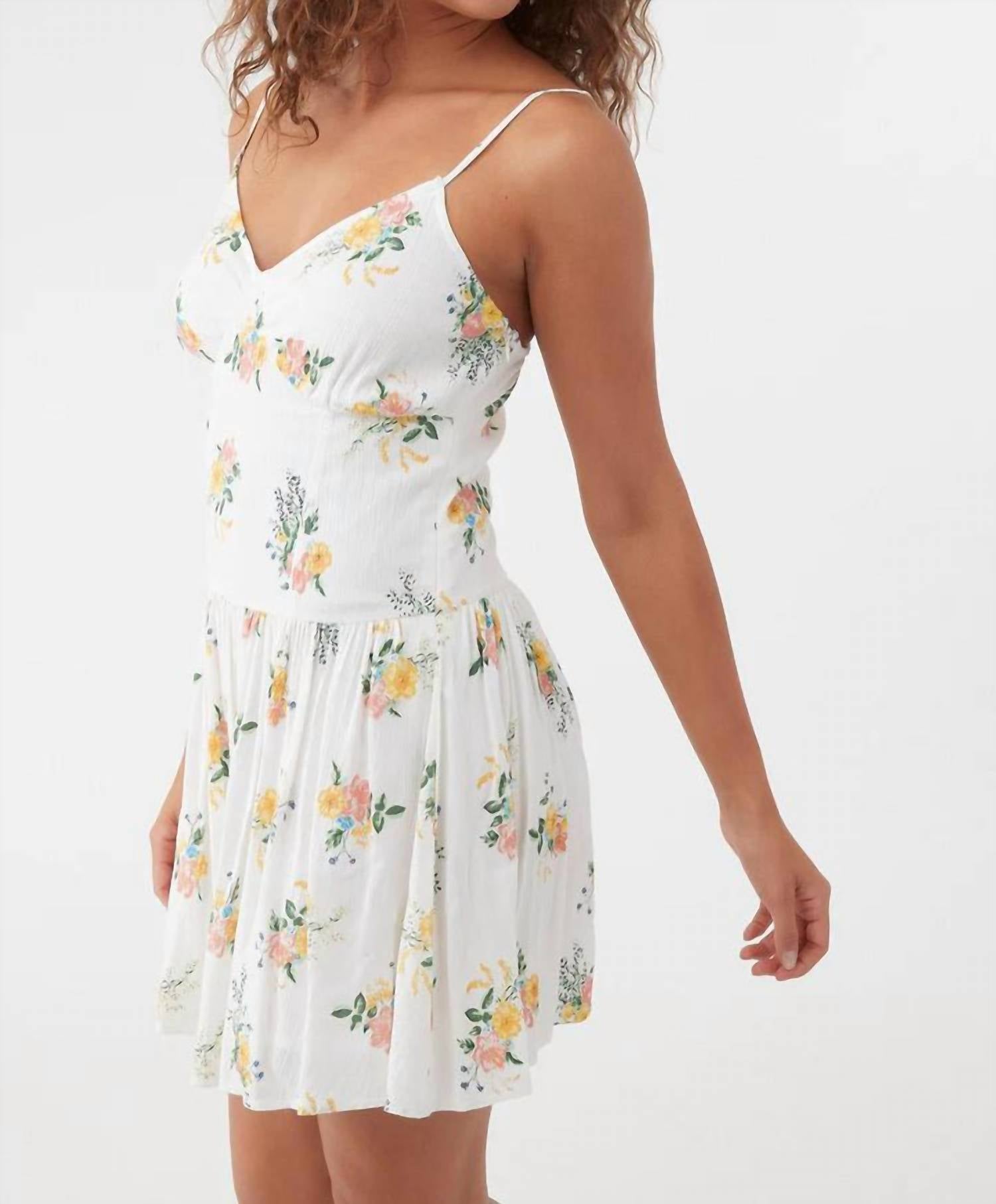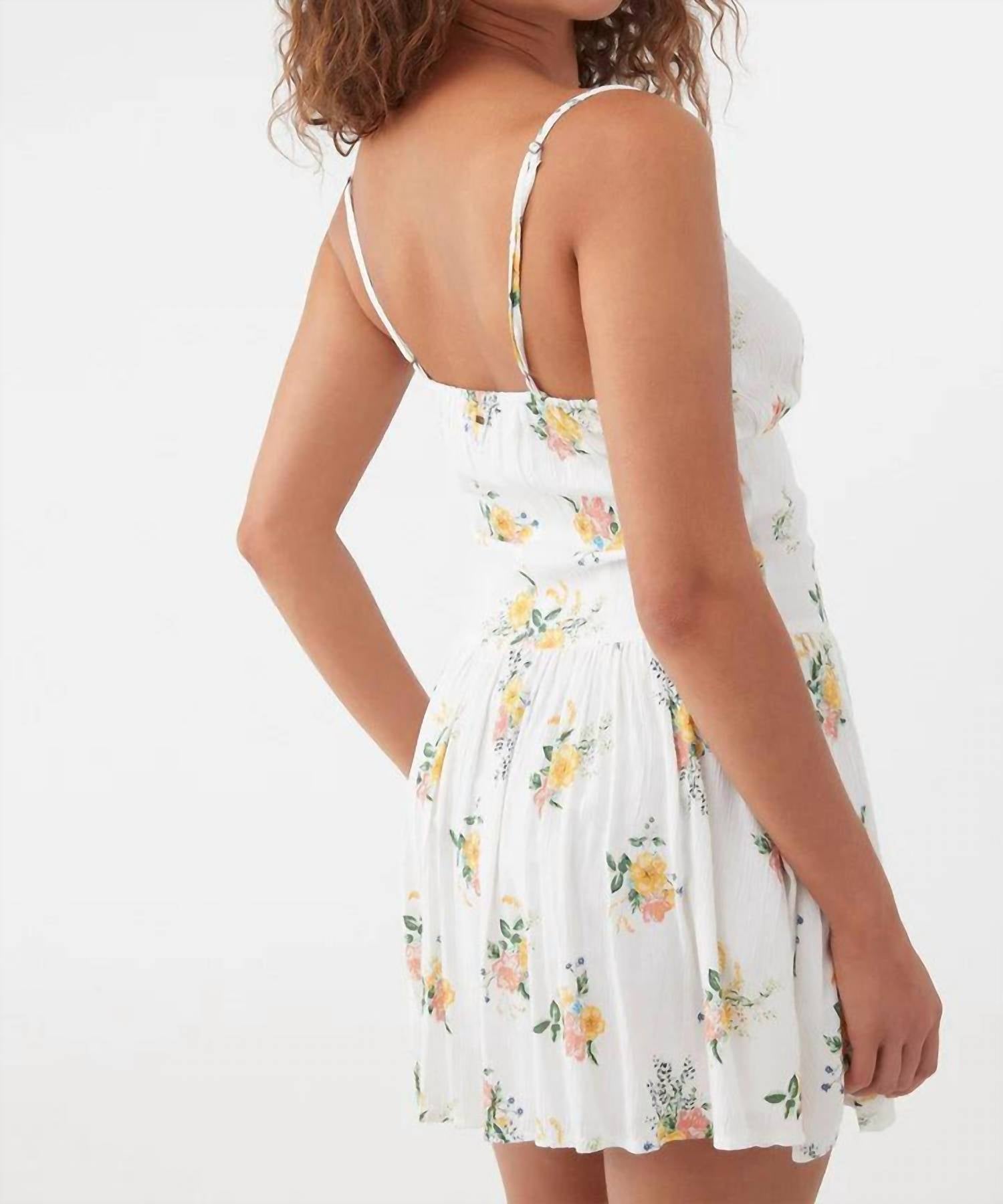 The perfect mini dress for those warmer months. Step into summer with the Slade Dress by O'NEILL, a stunning piece in winter white adorned with a floral print. This women's mini dress features delicate spaghetti straps and a flattering v-neckline, expertly tailored for your next holiday party. Made from 100% Viscose, it measures 28" in length for a chic fit. It sports a hidden zip closure, adjustable straps for a perfect fit, and is fully lined for comfort.