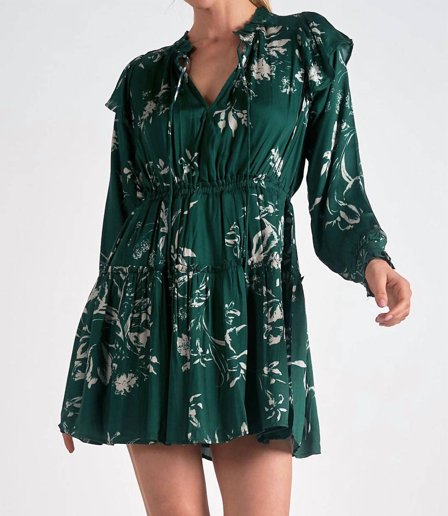 A short and breezy dress for those warmer days. Introducing the Long Sleeve V-neck Dress by ELAN, an A-line silhouette perfect for your holiday party wardrobe. Made from luxurious 100% Modal material, this mini dress in the vibrant Jade Toulouse color showcases a floral pattern that adds a touch of boho chic to your spring collection. Featuring long sleeves and a V-neckline, the dress offers effortless style with a convenient pull-on closure.