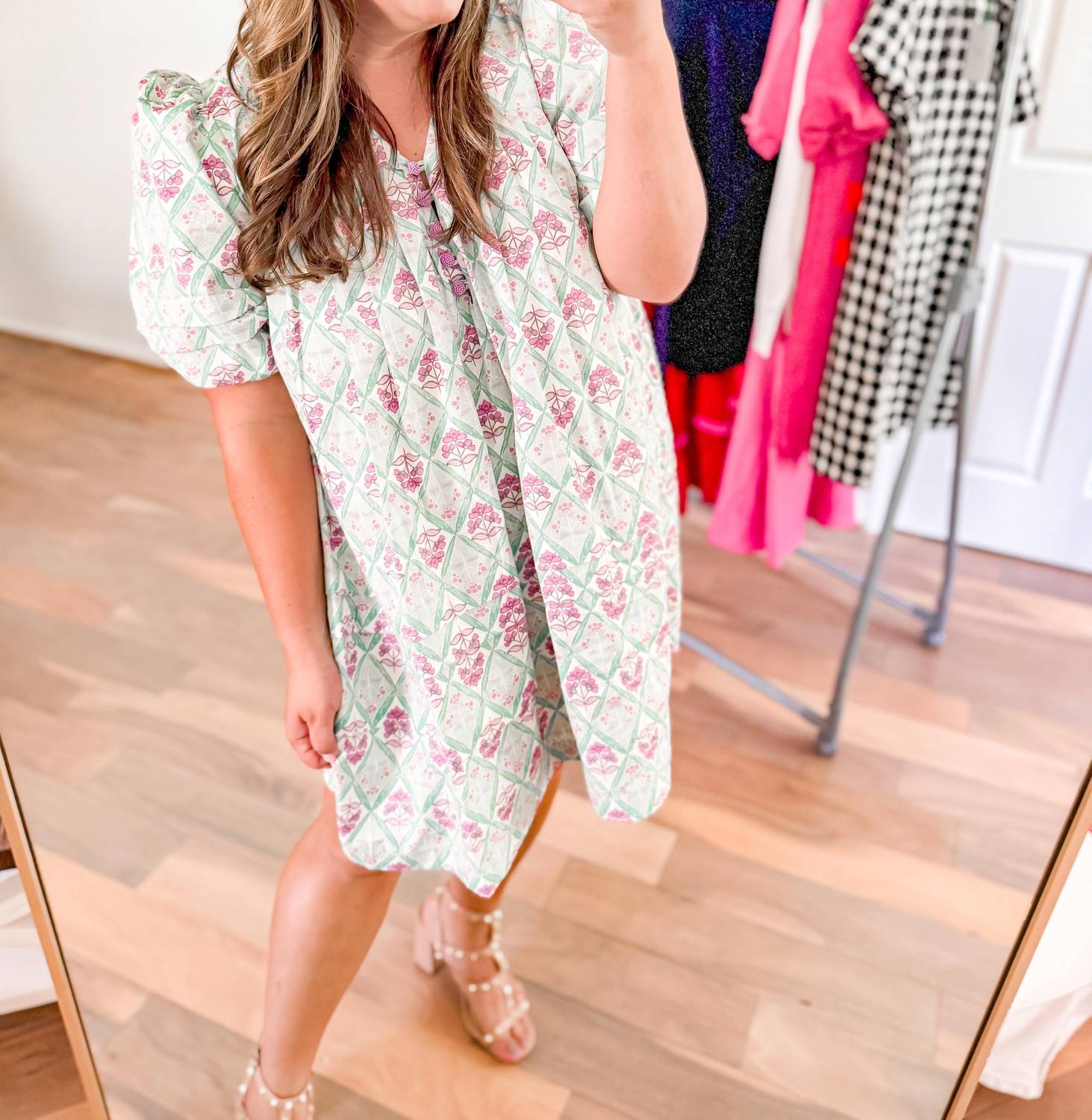 A short and breezy dress for those warmer days. Introducing the Paris Floral V Neck Dress by Karlie, a charming mini that combines a shirt silhouette with a playful floral pattern. Designed with short puff sleeves and decorative lilac buttons, this dress offers both style and comfort. Crafted from lightweight cotton, it showcases a relaxed fit for an easy, breezy feel. Perfect for any occasion, it features a flattering V-neck and comes in a vibrant multi-color palette.