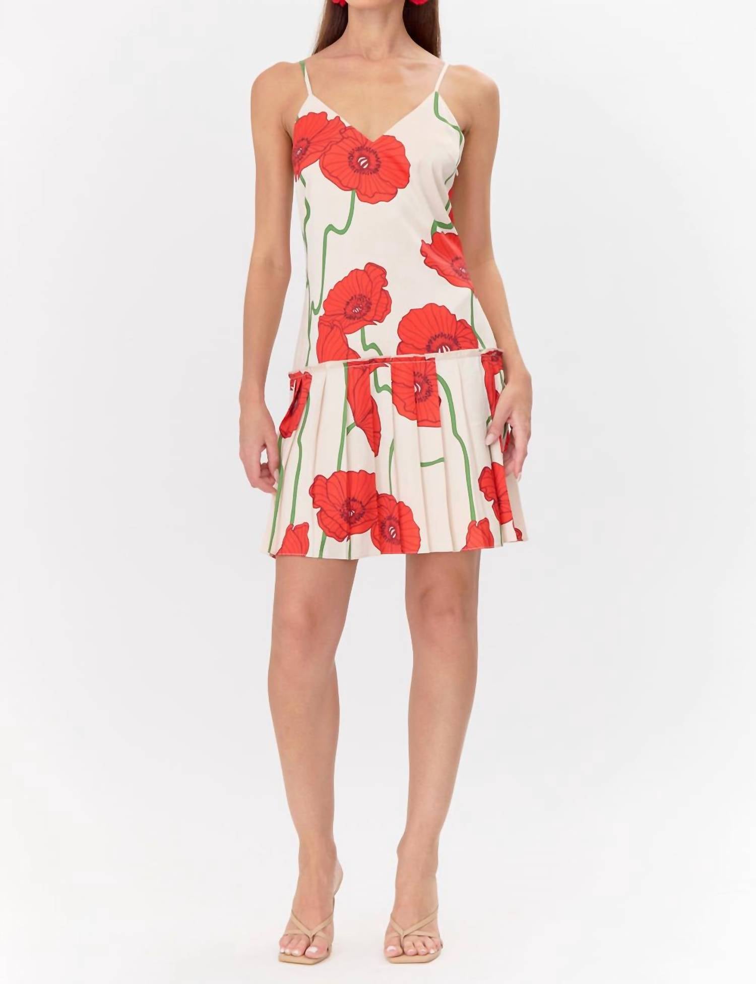 The kind of easy and flattering dress you'll be reaching for all season long. Step into summer elegance with the Camila Abstract Rose Print Mini Dress by Adelyn Rae. This charming piece features spaghetti straps and an A-line silhouette, crafted from 100% polyester with a romantic floral pattern in cream and red. Designed with a flirty 34.75" length, it offers a feminine v-neck and a convenient pull-on closure. Care for this dress by hand washing in cold water and laying flat to dry for the best results.