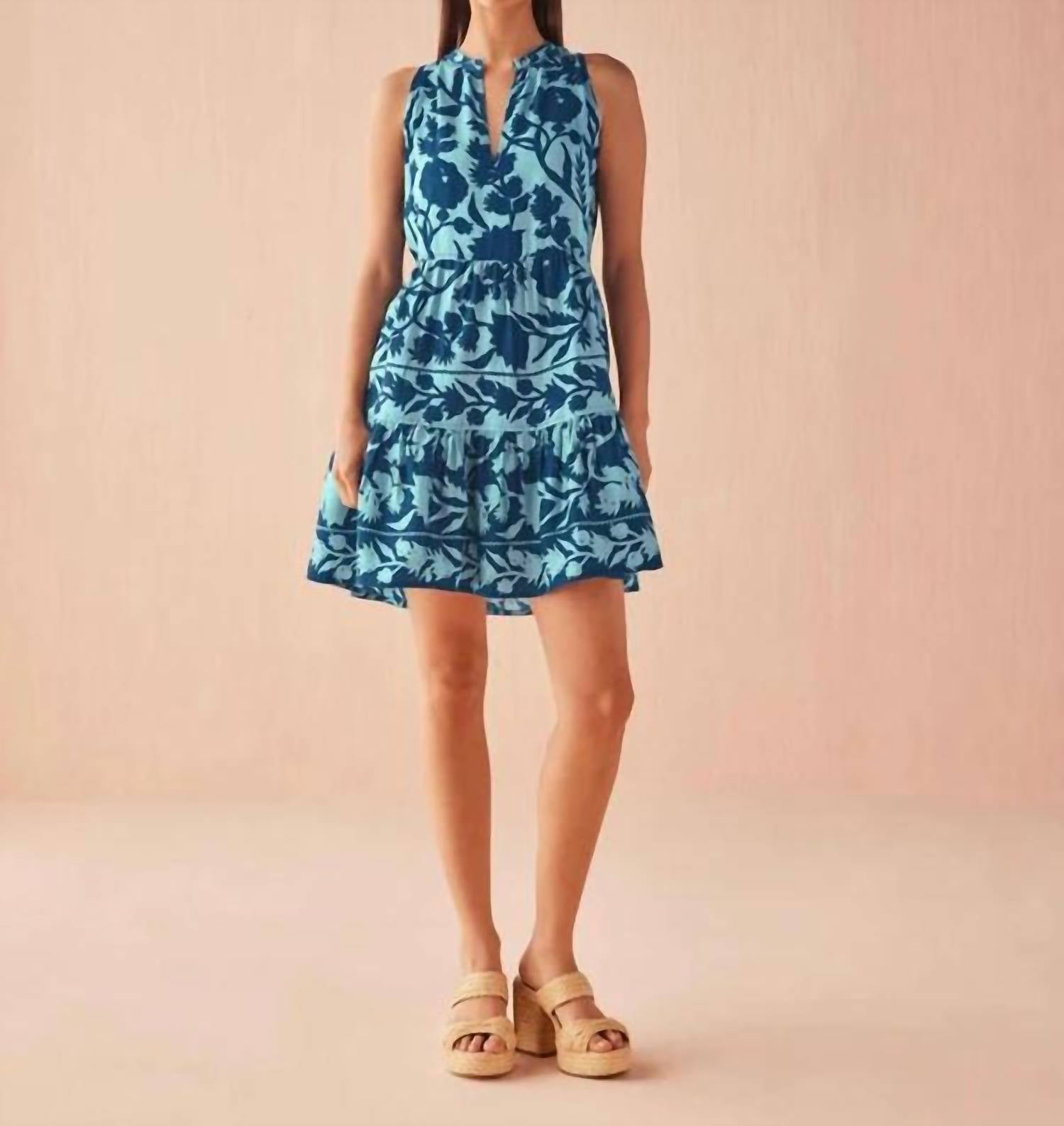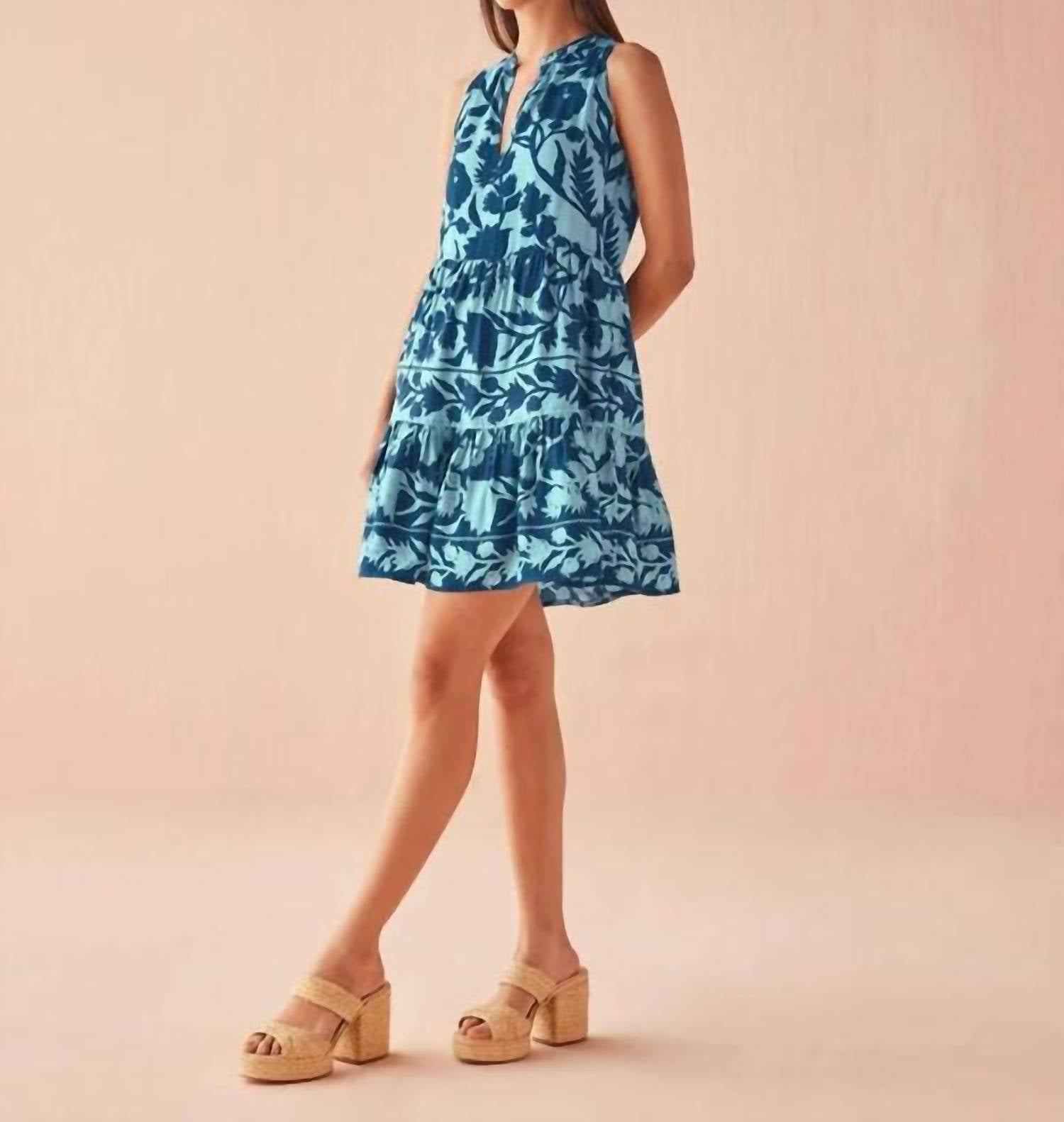 A short and breezy dress for those warmer days. Elevate your summer wardrobe with the Elsie Mini Dress by OMIKA, a feminine, chic piece in an eye-catching Lolita Harbor floral print. This sleeveless A-line silhouette features a V-neck with a button closure for versatile styling and playful tiers that add volume to its flared skirt. Crafted from 100% Modal, this 34.25-inch garment is both comfortable and fashionable. Care is easy with machine wash and line dry instructions, perfect for holiday parties or boho chic occasions.