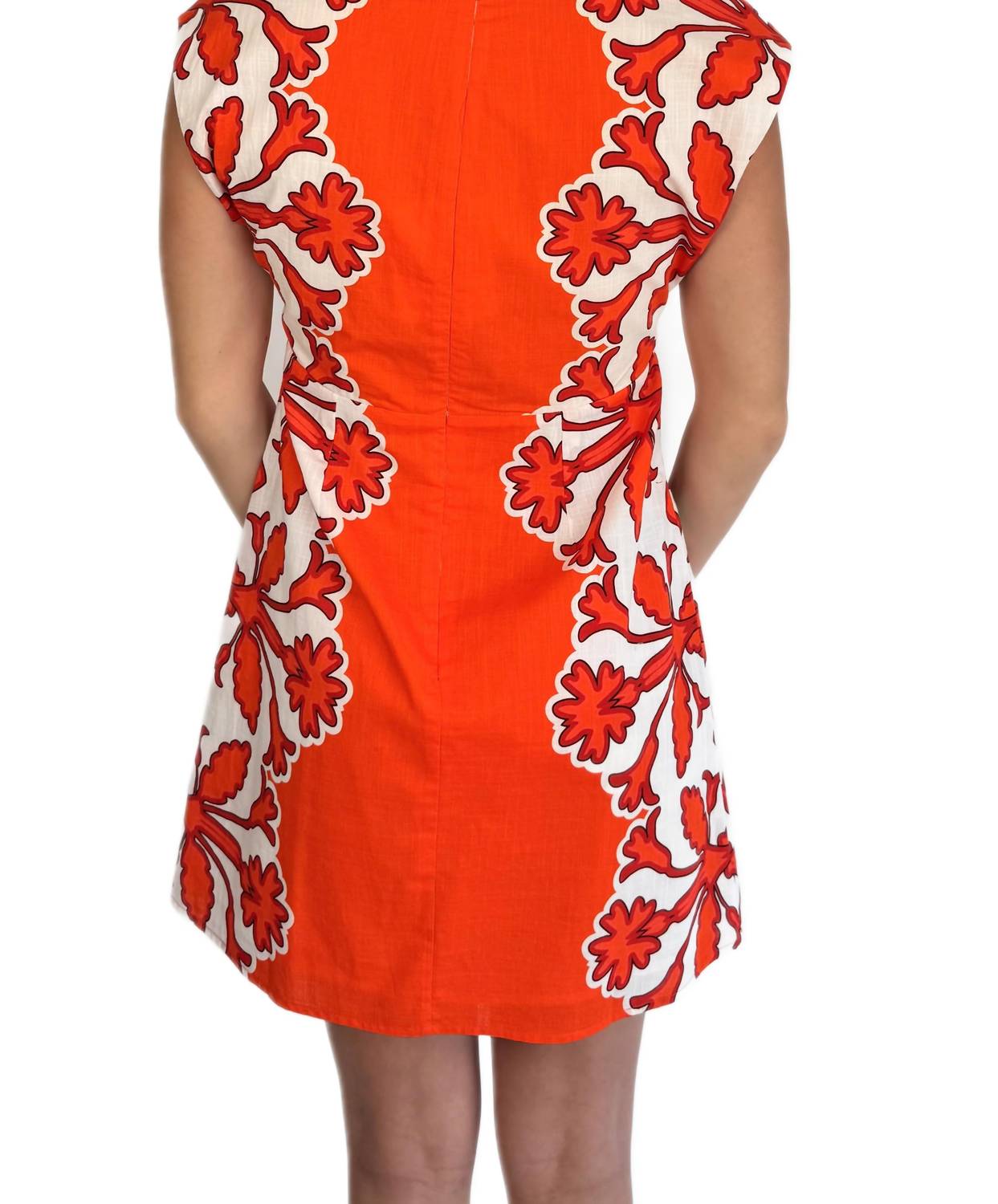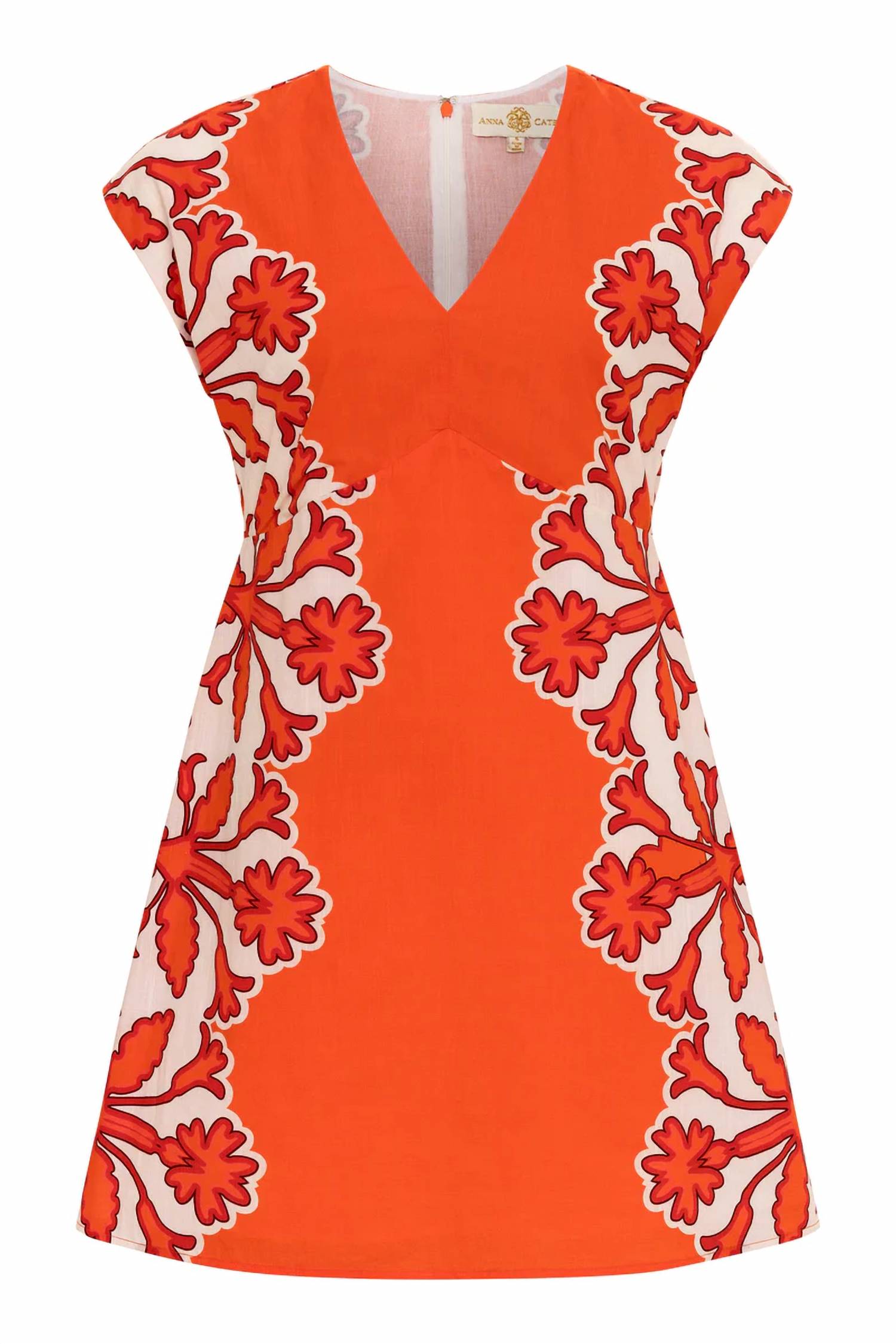 A short and breezy dress for those warmer days. Introducing the Walker Dress by Anna Cate, a striking piece in Cherry Fire featuring an abstract floral print. This mini dress is crafted from 100% Linen and designed with a flattering V-neckline and elegant cap sleeves. The hidden back zip closure ensures a sleek silhouette, while the lined interior adds comfort to its empire waist design. Perfect for various occasions, the Walker Dress runs true to size and elevates any wardrobe with its versatile style.