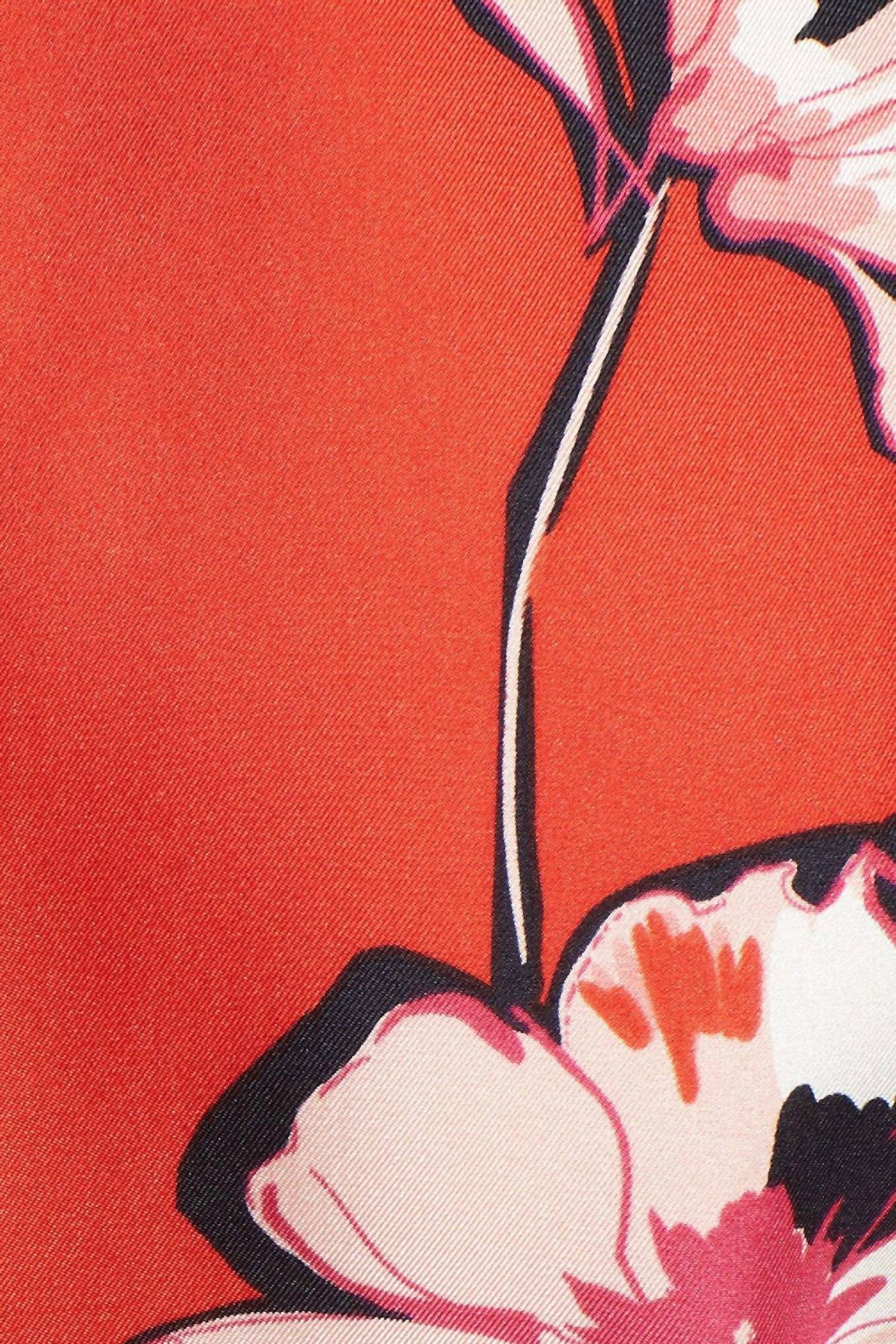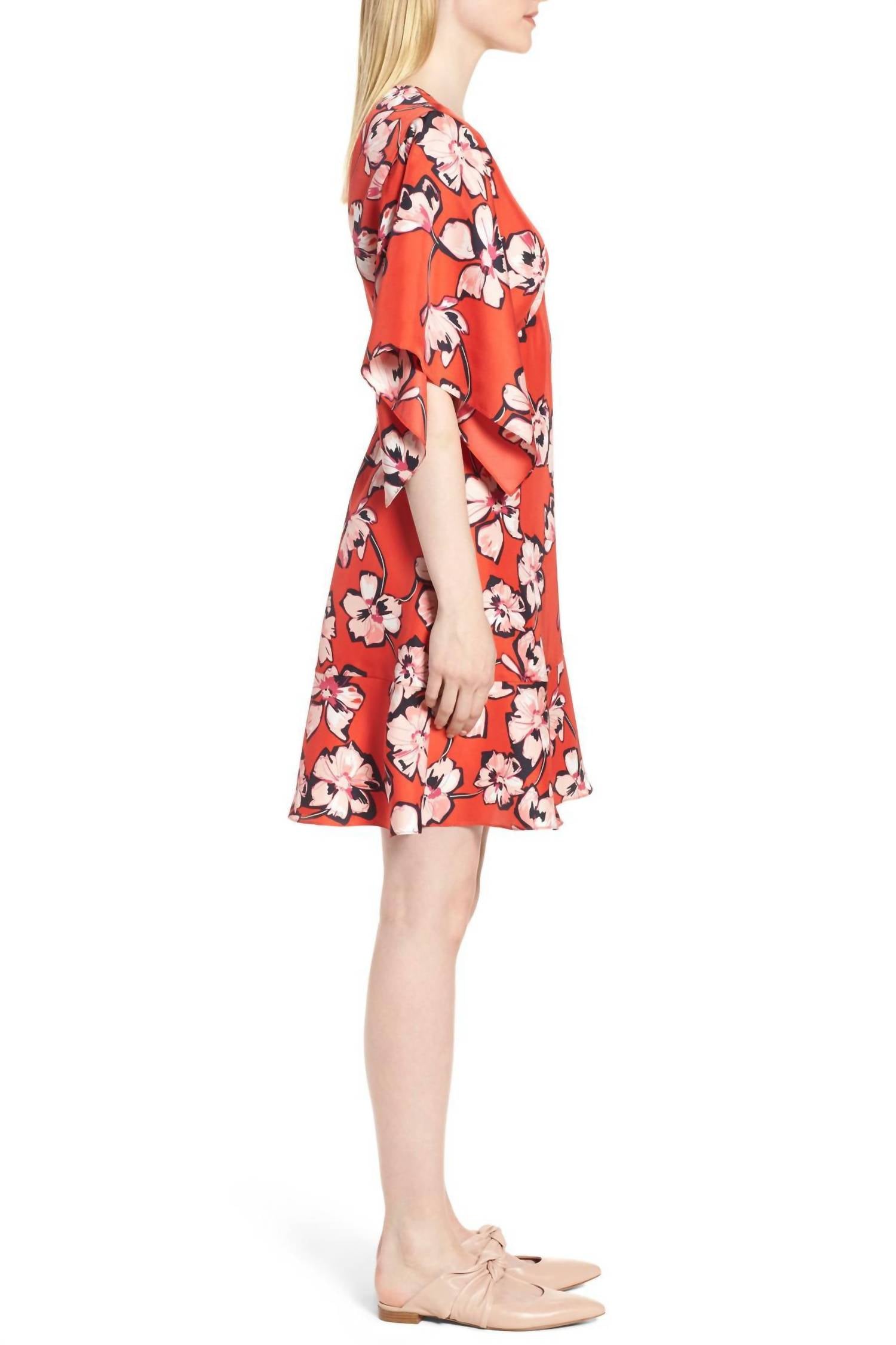 The kind of easy and flattering dress you'll be reaching for all season long. Cascading slit sleeves add drama to an Empire-waist dress with a flounced hem and a spirit-brightening floral print. Hidden back-zip closure Empire waist Unlined V-neck Elbow-length sleeves 100% silk. Dry clean Length 38"