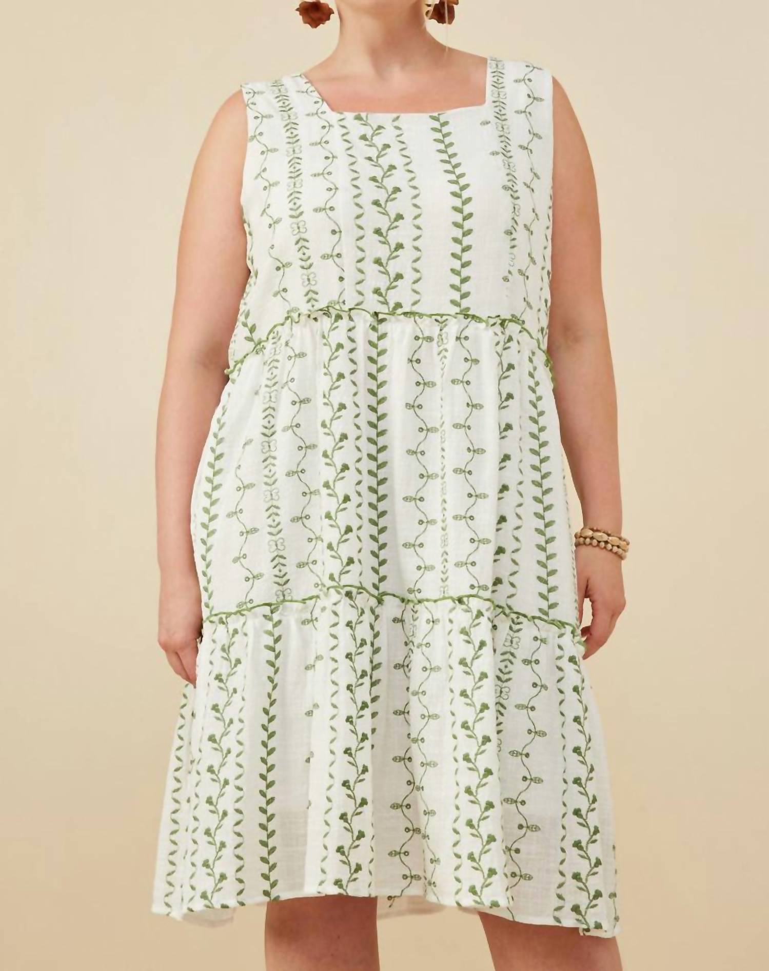 Hayden La - Botanical Embroidered Ruffle Tiered Tank Dress - Plus
