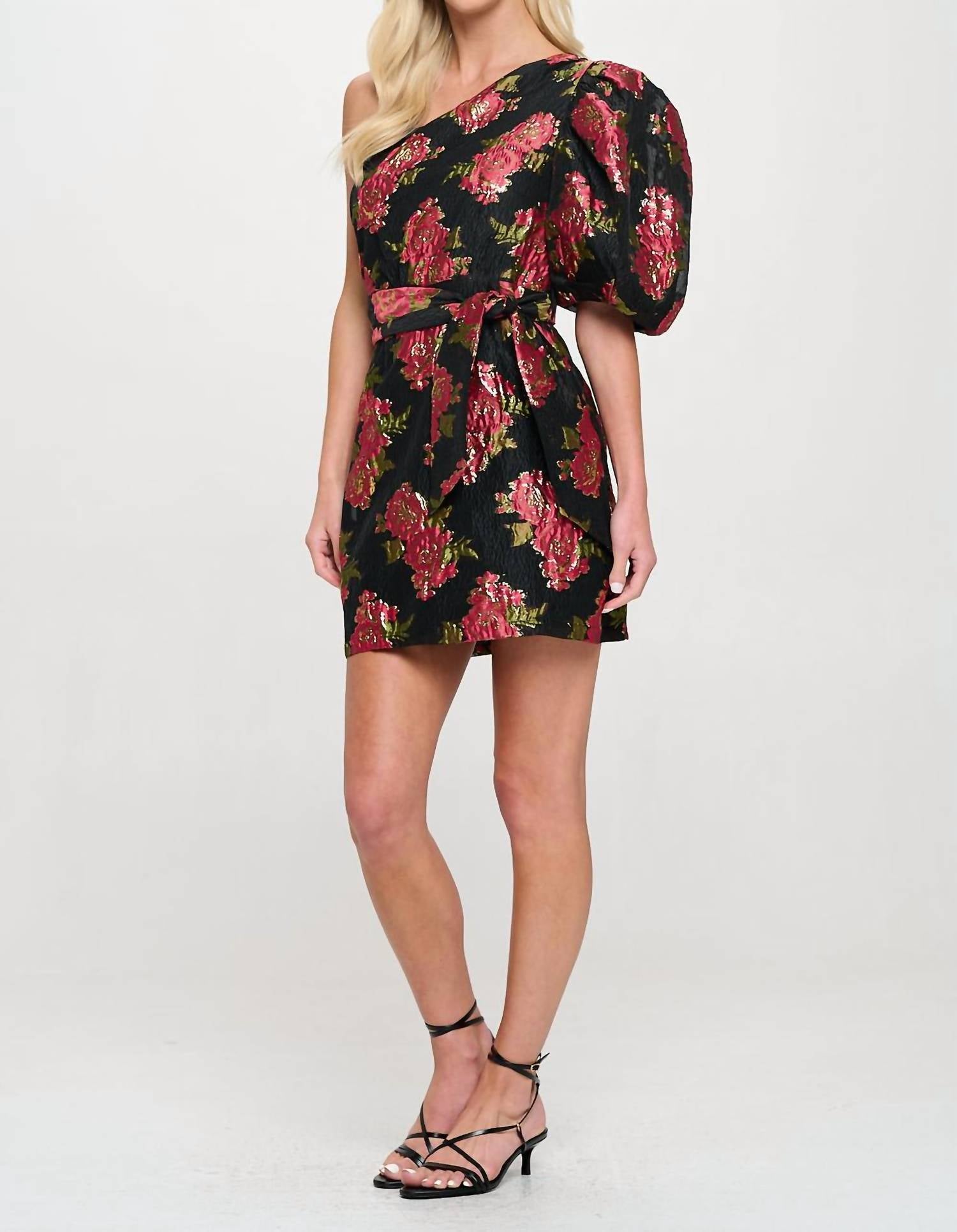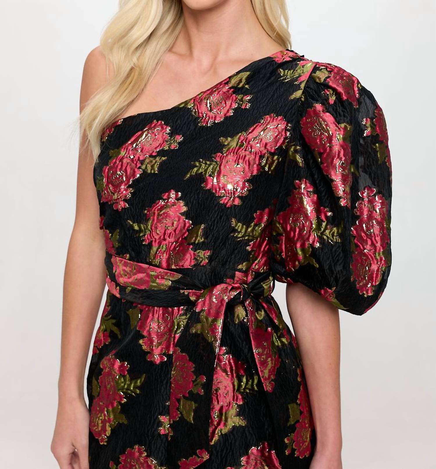 The perfect mini dress for those warmer months. Meet Me in Santorini presents the One Shoulder Mini Dress in Scarlet Blossom Noir, a captivating A-line design perfect for special occasions. This strapless dress is crafted from luxurious cotton with a dramatic puff sleeve and features a striking floral pattern. The fitted waist and mini length enhance its flattering silhouette, ensuring a stylish appearance. Closure: Zip closure. Ideal for women who appreciate bold elegance and chic style.