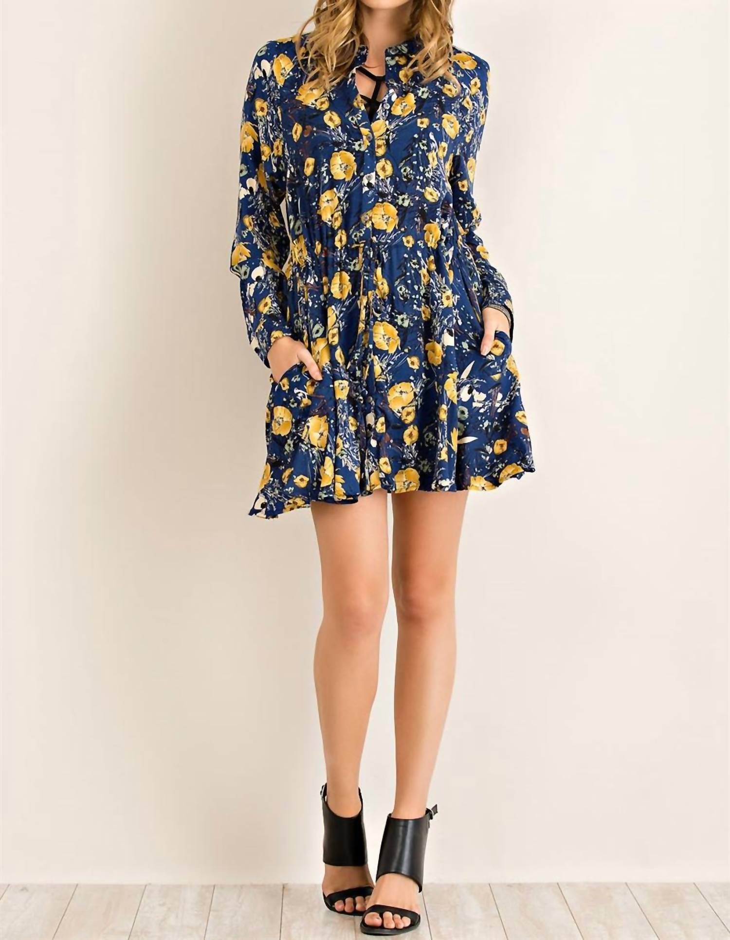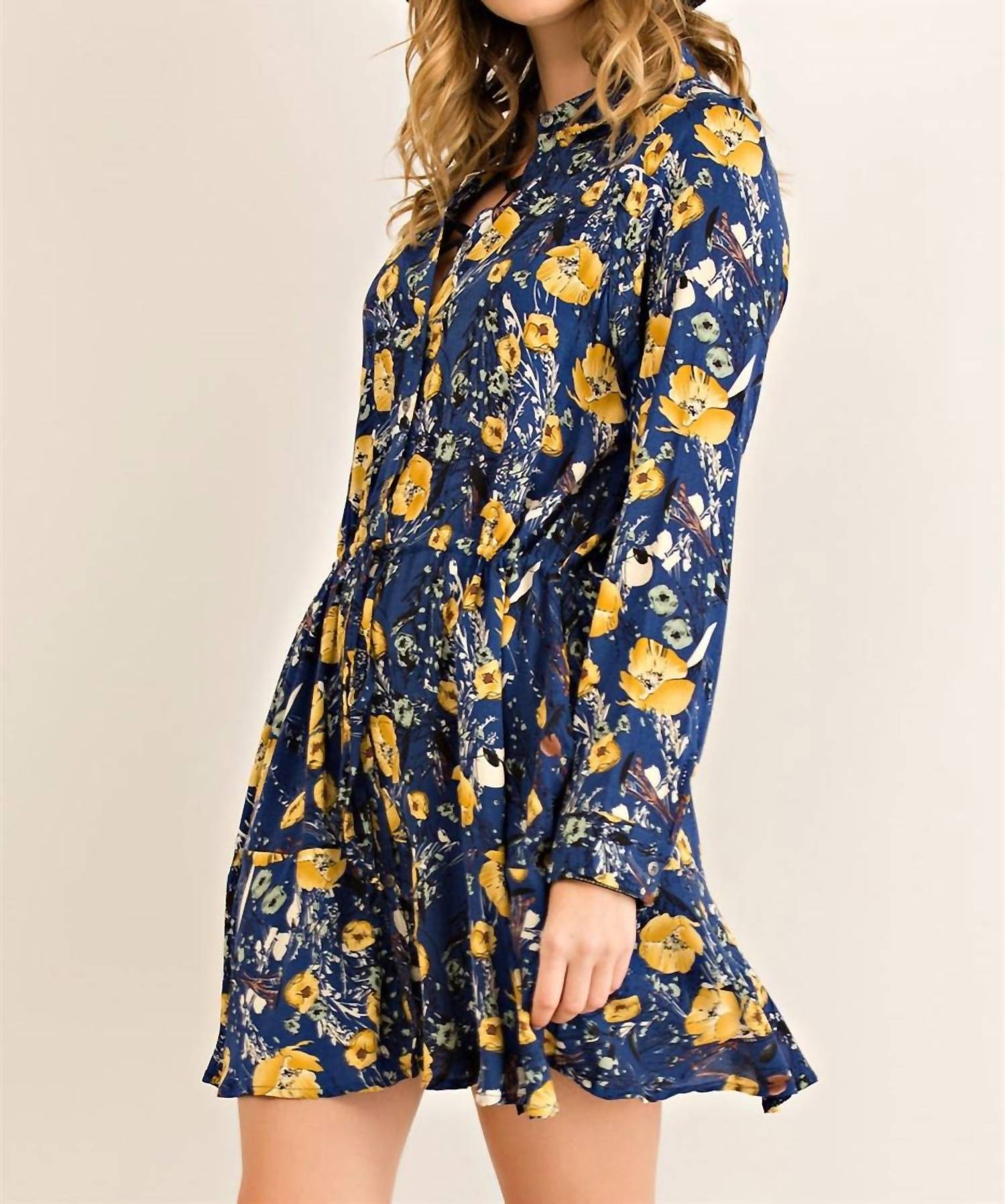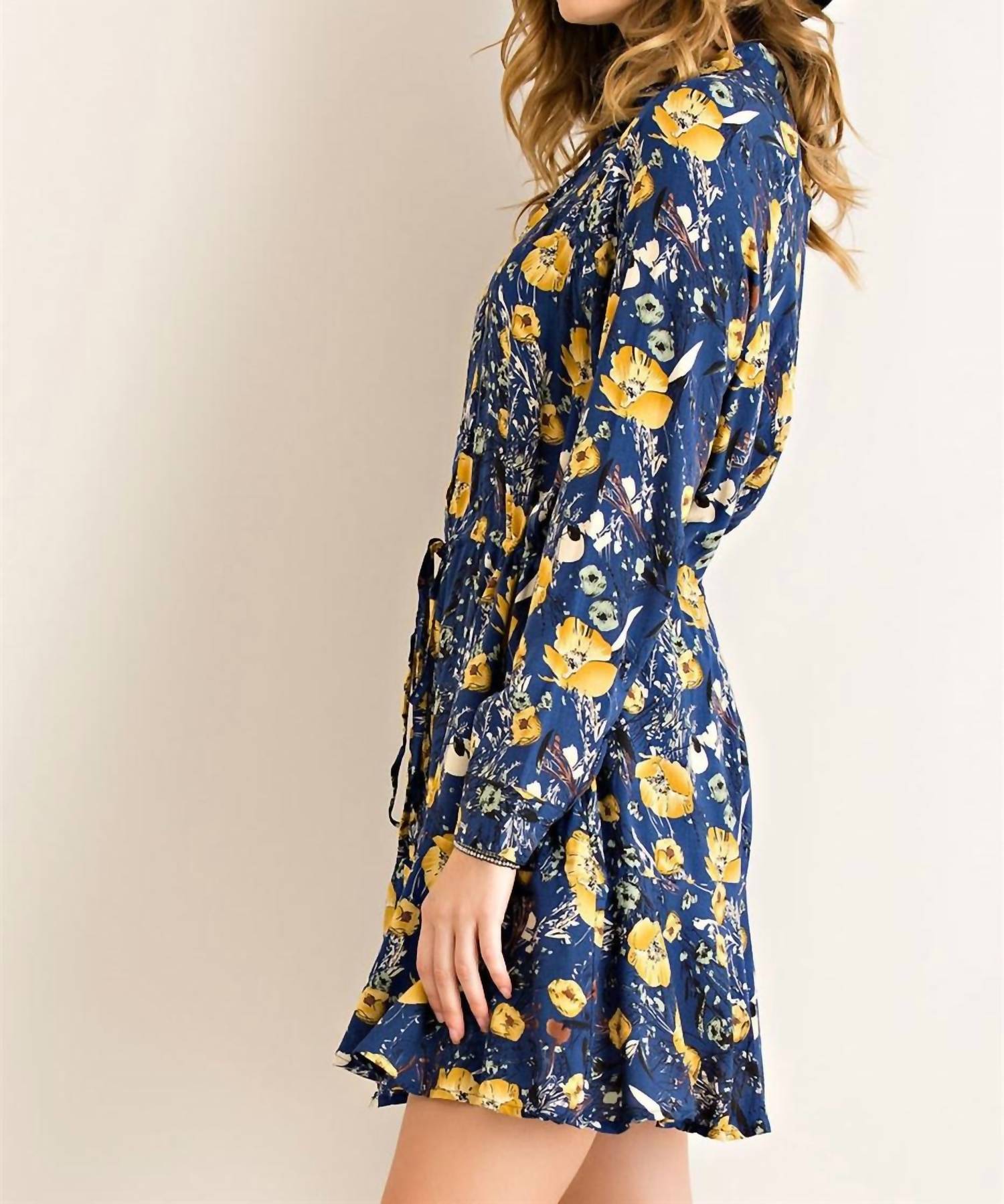 The kind of easy and flattering dress you'll be reaching for all season long. Elevate your wardrobe with the Floral Print Button Down Mini Dress by Entro, perfect for adding a touch of elegance to any occasion. This mini dress features long sleeves with buttoned cuffs and a basic collar, finished with an adjustable waist tie and a ruffled hem for a feminine silhouette. The dress is crafted from a lightweight, woven fabric with a floral pattern, ensuring a charming and non-sheer appearance. Closure: Button closure.