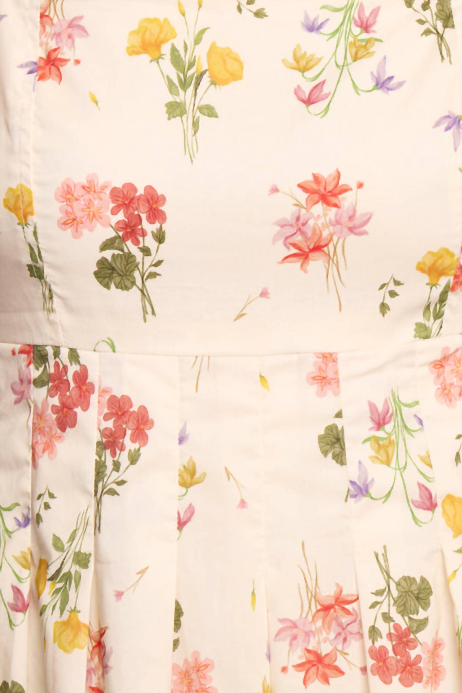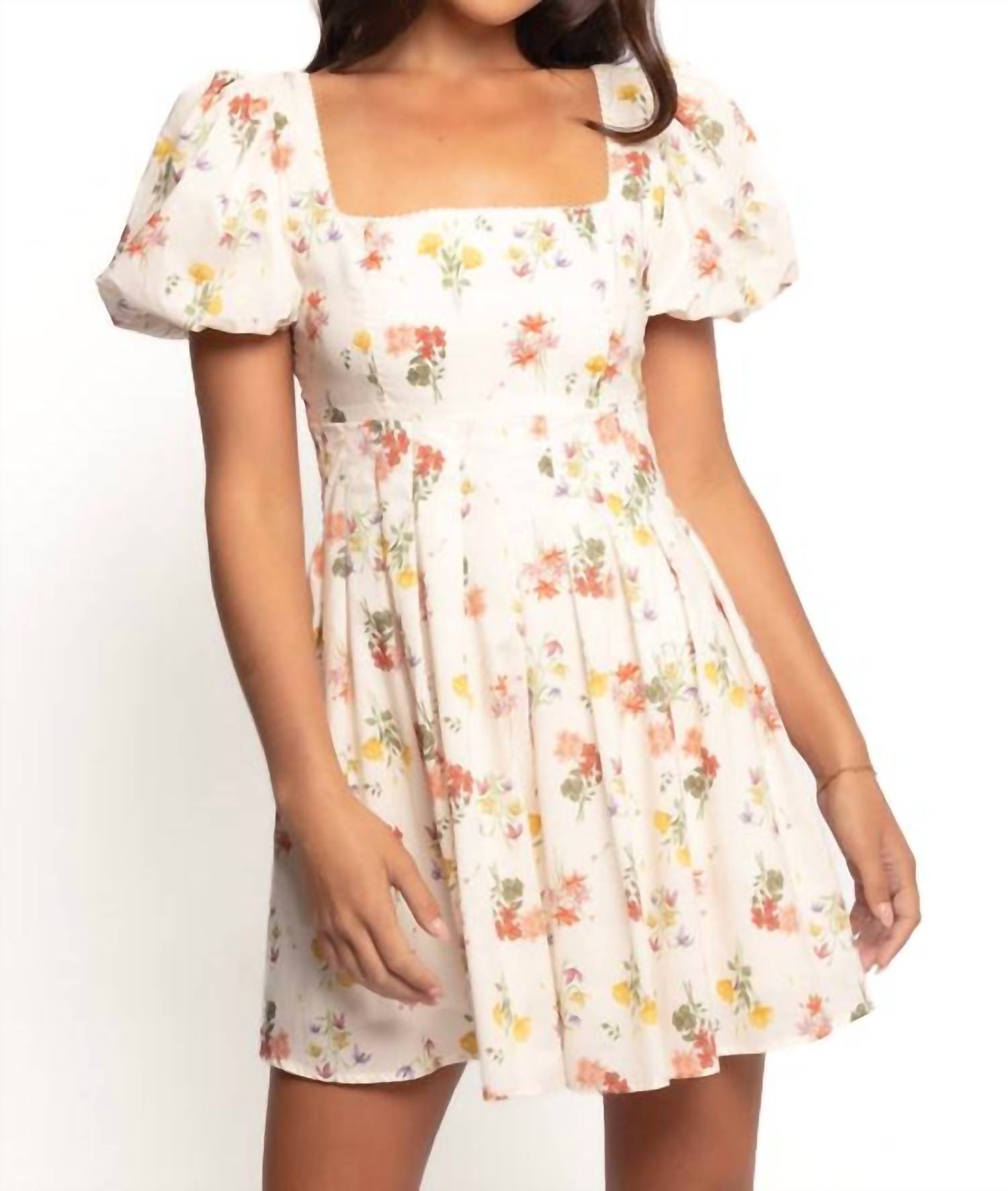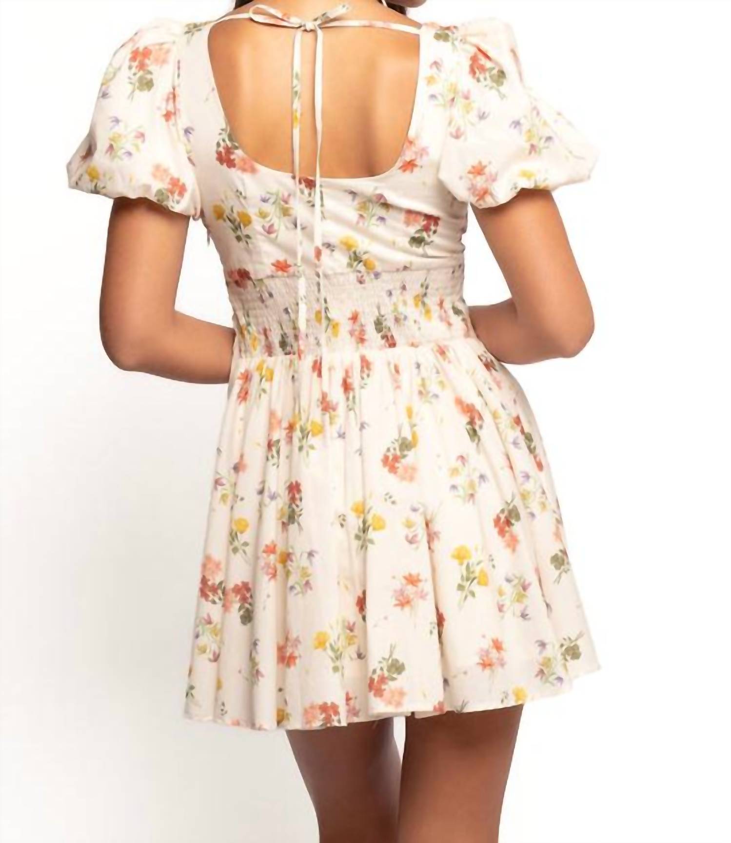 A short and breezy dress for those warmer days. Unveil your stylish side with the Floral Square Neck Dress by MABLE, a delightful piece in cream for spring and summer occasions. This mini dress is crafted from 100% Rayon for the shell and fully lined with 100% Polyester, featuring puffed short sleeves and a trendy square neckline. Enjoy the ease of a side zipper and the elegance of an open tie back. With a garment length from shoulder of 32" and a bust of 30" in size small, this dress is perfect for an effortless beach day or a boho chic outing.