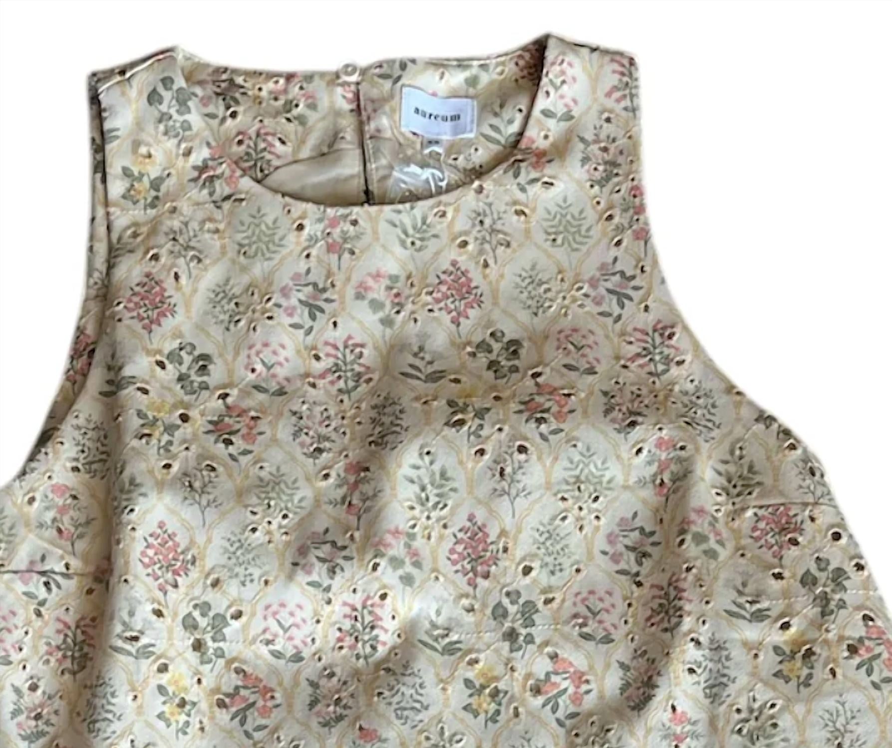 The perfect mini dress for those warmer months. Introducing the Sleeveless Embroidered Eyelet Mini Dress by Aureum, a bold statement piece in yellow floral to brighten any occasion. Made from quality cotton, this shift dress features a crewneck silhouette and a zip closure for easy wear. Perfect for holiday parties and spring festivities, it's designed with a boho chic flair. Add this playful dress to your wardrobe for a vibrant pop of color.