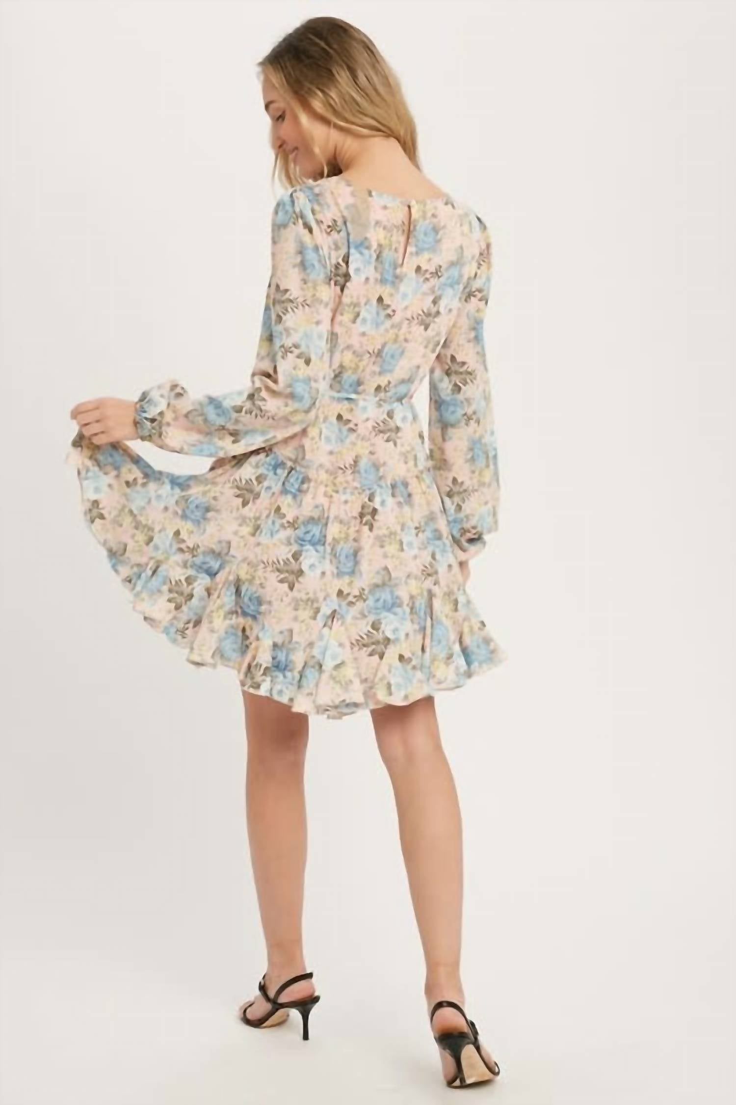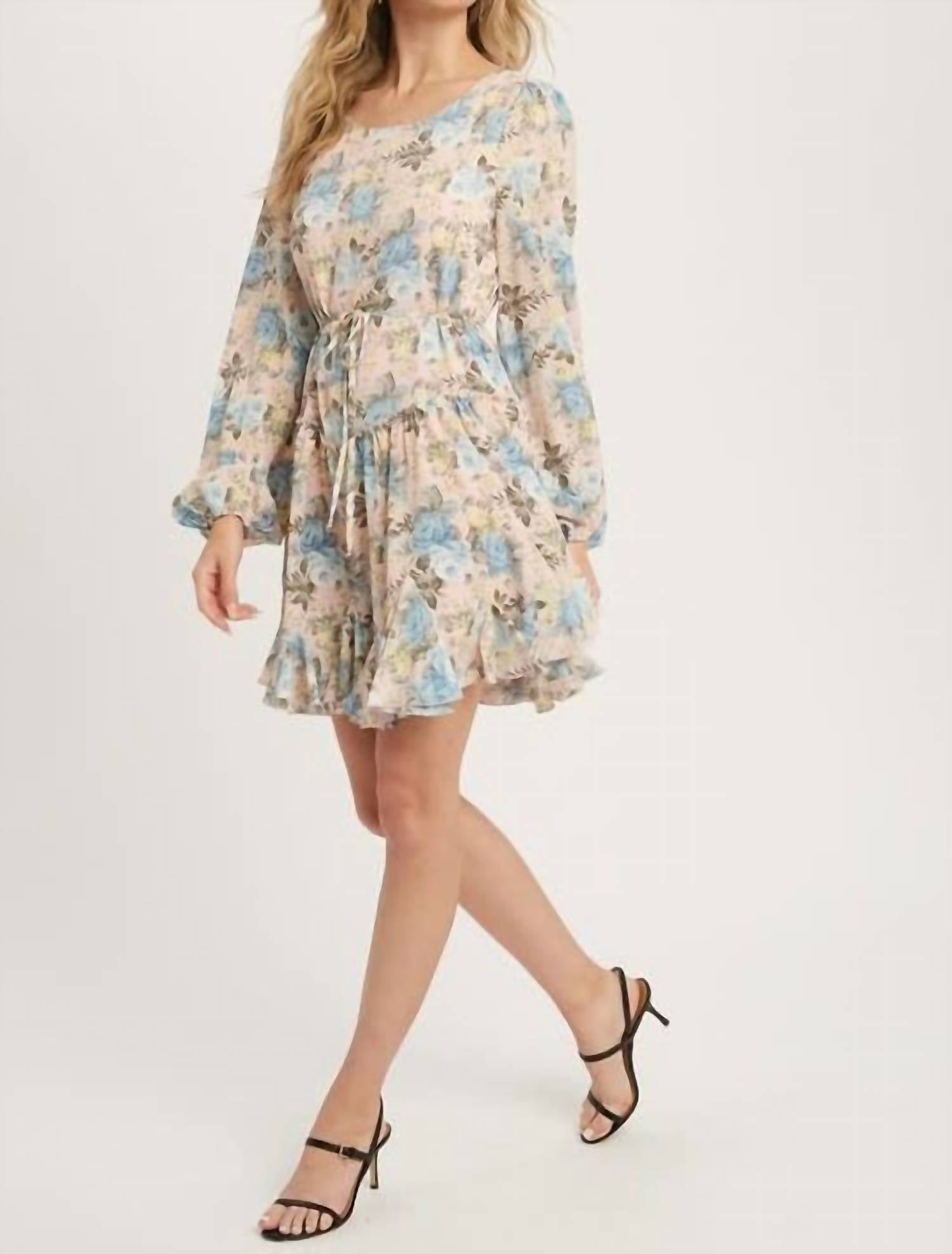 The perfect mini dress for those warmer months. Embrace effortless elegance with the Floral Print Ruffled Swing Dress by BluIvy. This dusty pink mini dress showcases long sleeves and a charming A-line silhouette, perfect for any occasion. Made from 100% polyester, it features a button closure and a playful floral pattern. Model is 5'8" and is wearing a size small.