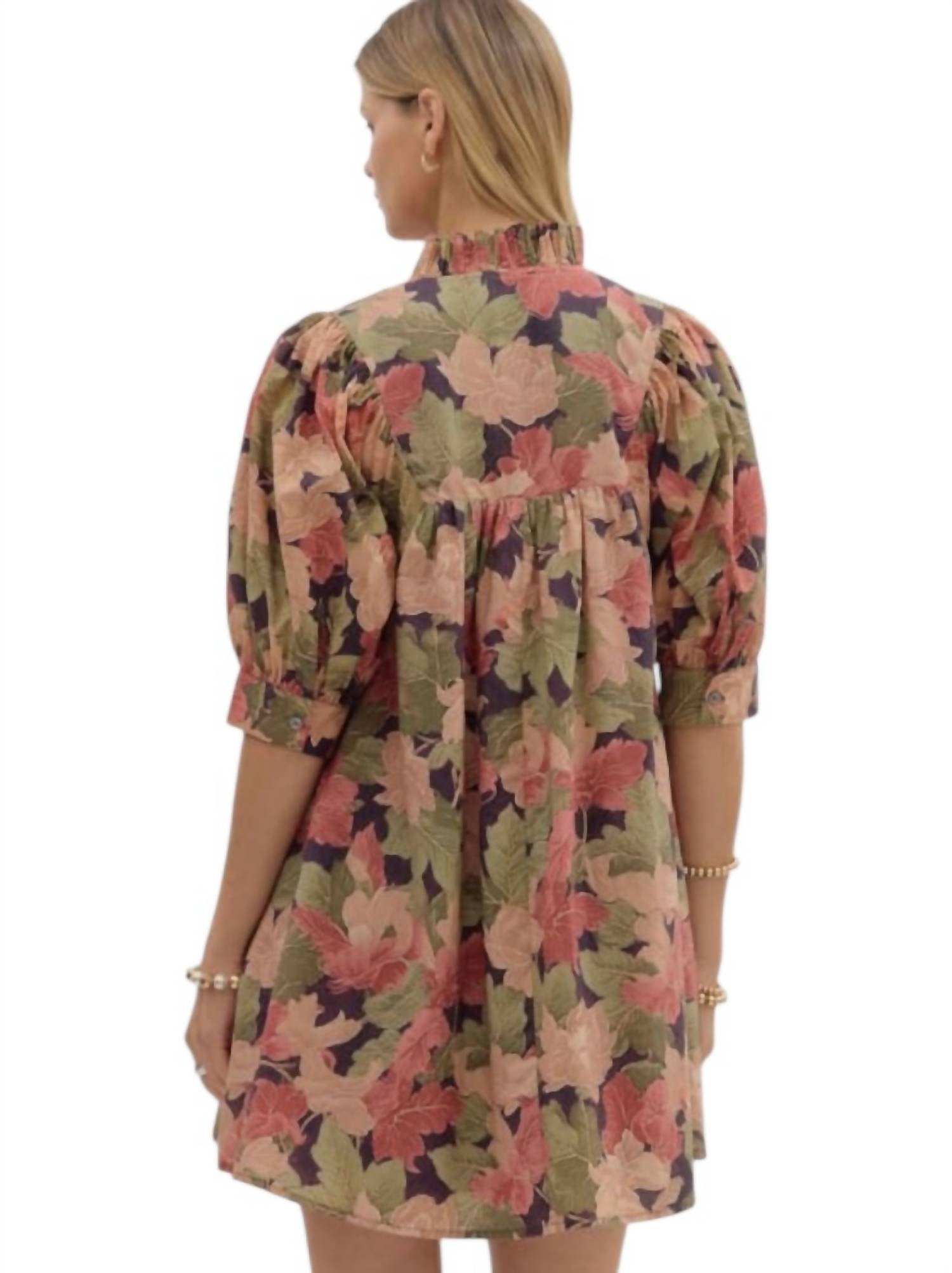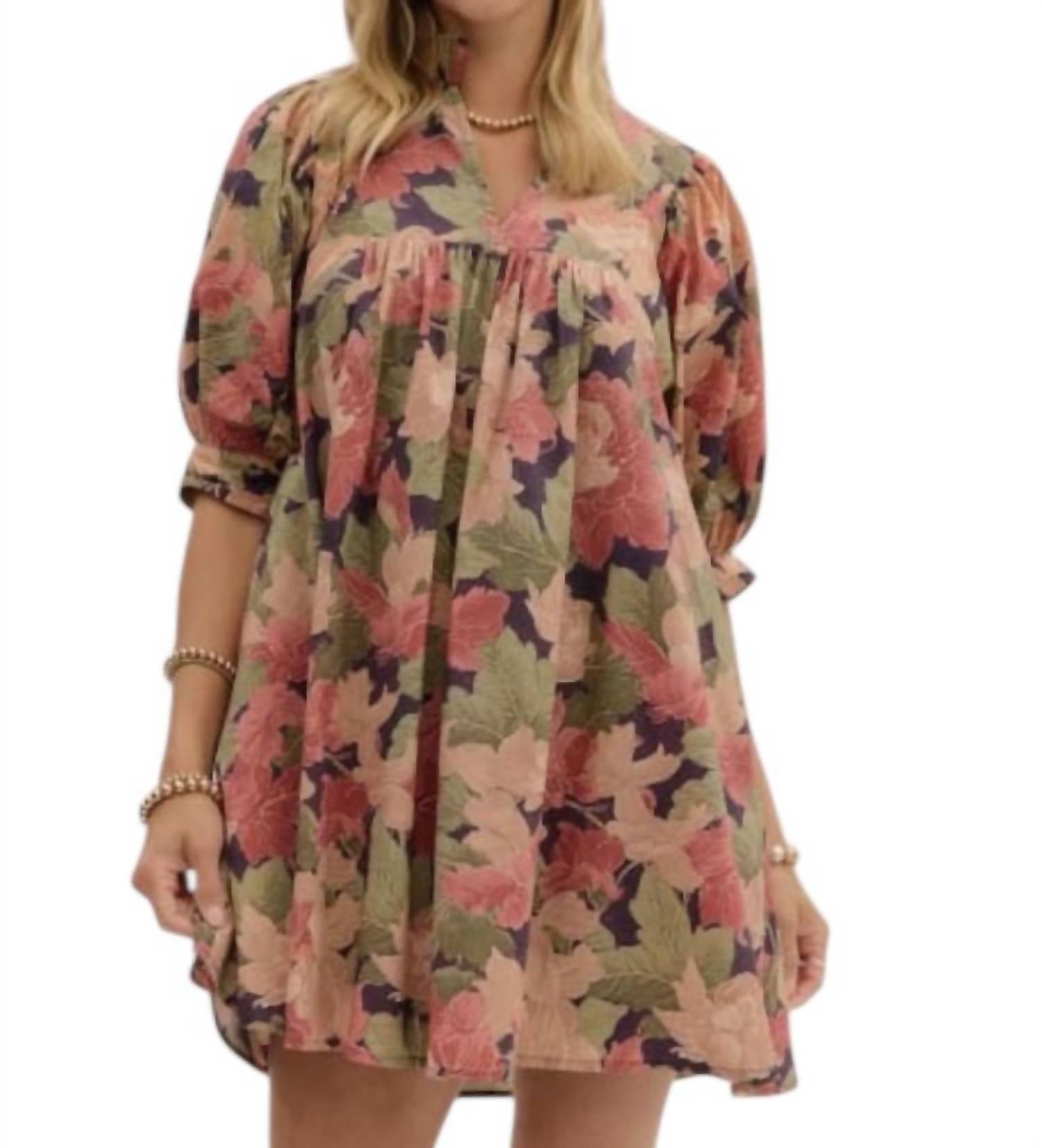 A short and breezy dress for those warmer days. Step into spring with the Entro Floral Pullover Mini Dress in Pink Multi, a perfect piece for a vacation or Mother's Day celebration. This short-sleeve, V-neck shift dress features a pleated neck ruffle detail and convenient side pockets, all crafted from lightweight, non-sheer 100% cotton. With a pull-on closure, it offers an elegant yet practical choice for any maximalist style enthusiast. Care instructions include hand washing and line drying to maintain its vibrant floral pattern.