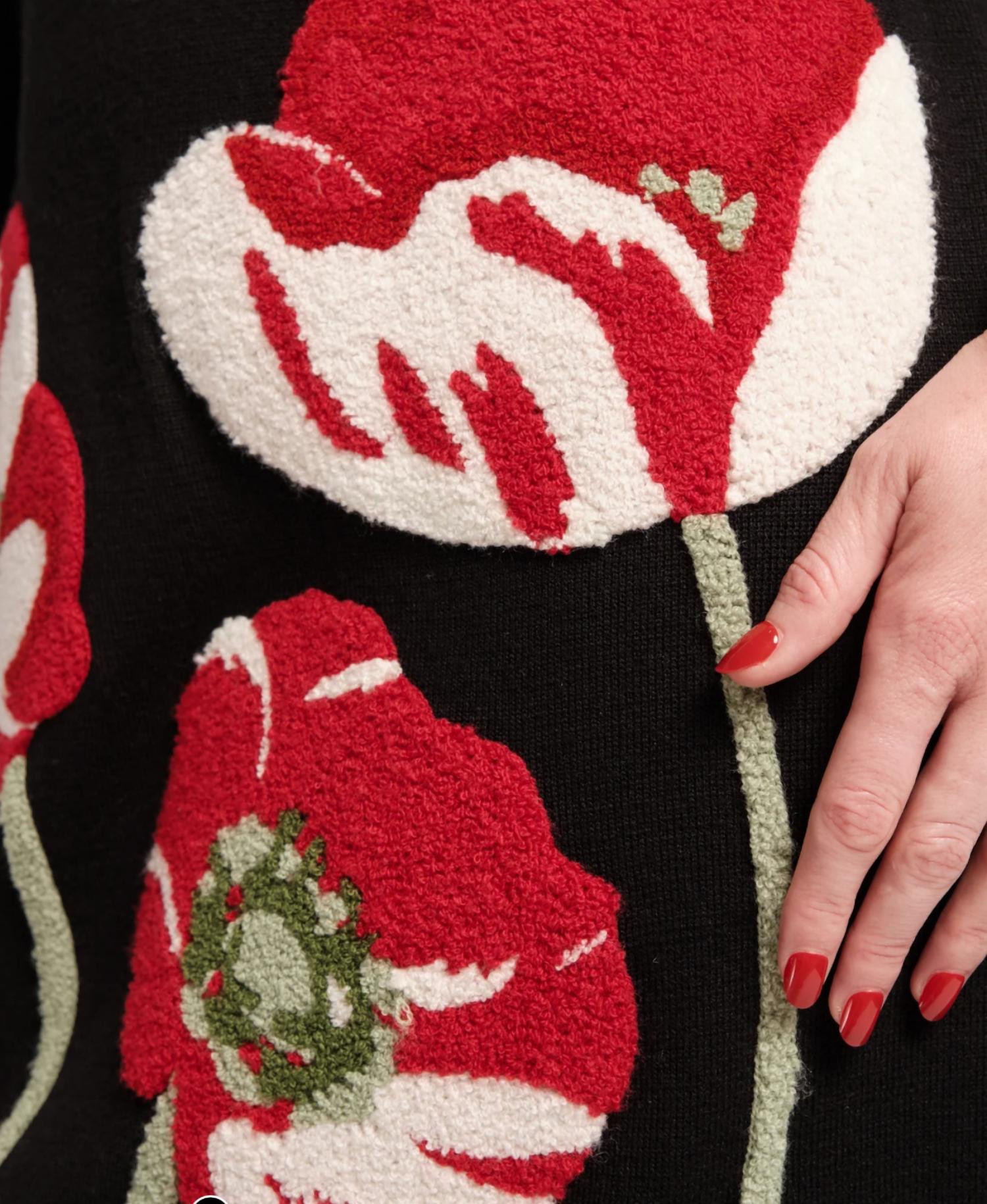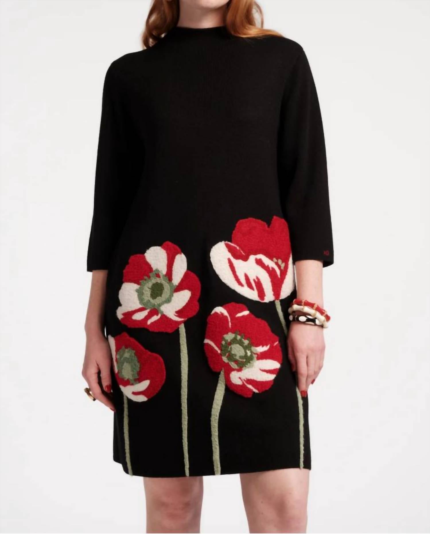 A short and breezy dress for those warmer days. Introducing the Frances Valentine Annie Embroidered Wool Dress, a captivating blend of elegance and charm in Poppy Black/Red. This mini dress boasts three-quarter sleeves and is crafted from a 50% Merino Wool, 50% Acrylic blend. Adorned with detailed floral embroidery, it features a chic mockneck and convenient quarter zipper closure on the top back. Care: Dry clean only.