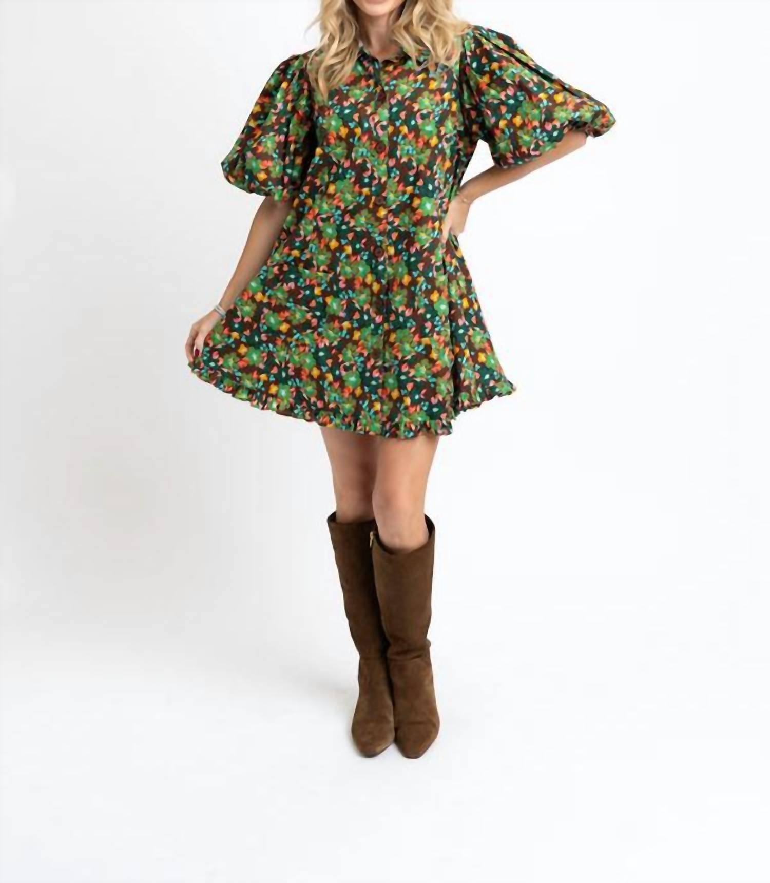 A short and breezy dress for those warmer days. Introducing the Floral Puff Sleeve Pocket Dress by Karlie, an elegant choice for any cocktail party or St. Patrick's Day event. Designed in a charming ashwood brown floral pattern, this mini-length dress features puff short sleeves and a stylish fit and flare silhouette. With a button front closure and practical pockets, it perfectly blends fashion with functionality. Care for it easily with machine wash instructions.