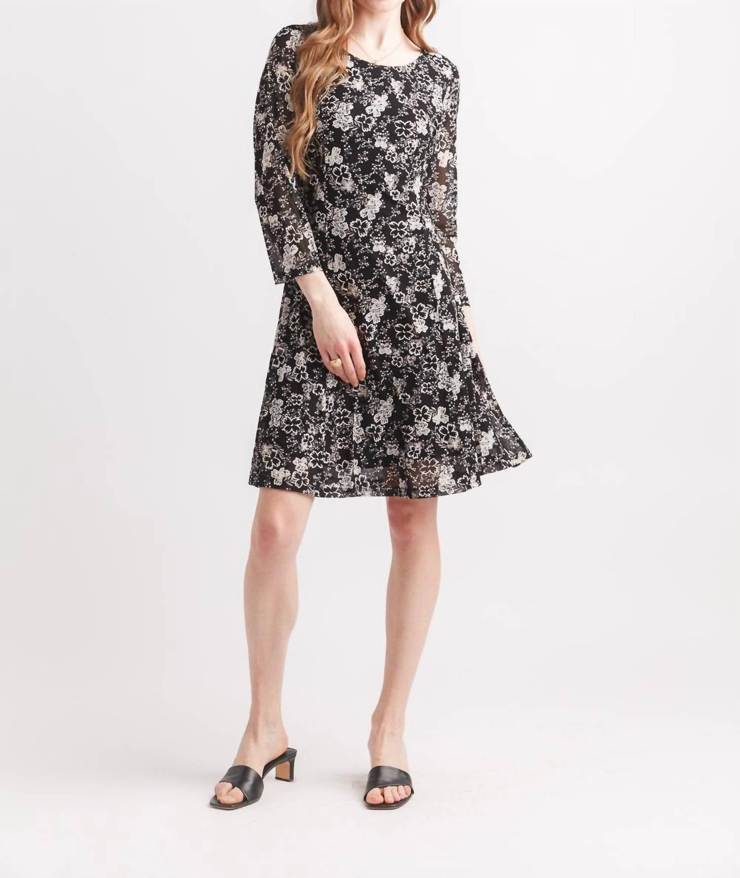Papillon - Floral Quarter Sleeve Stretch Mesh Dress