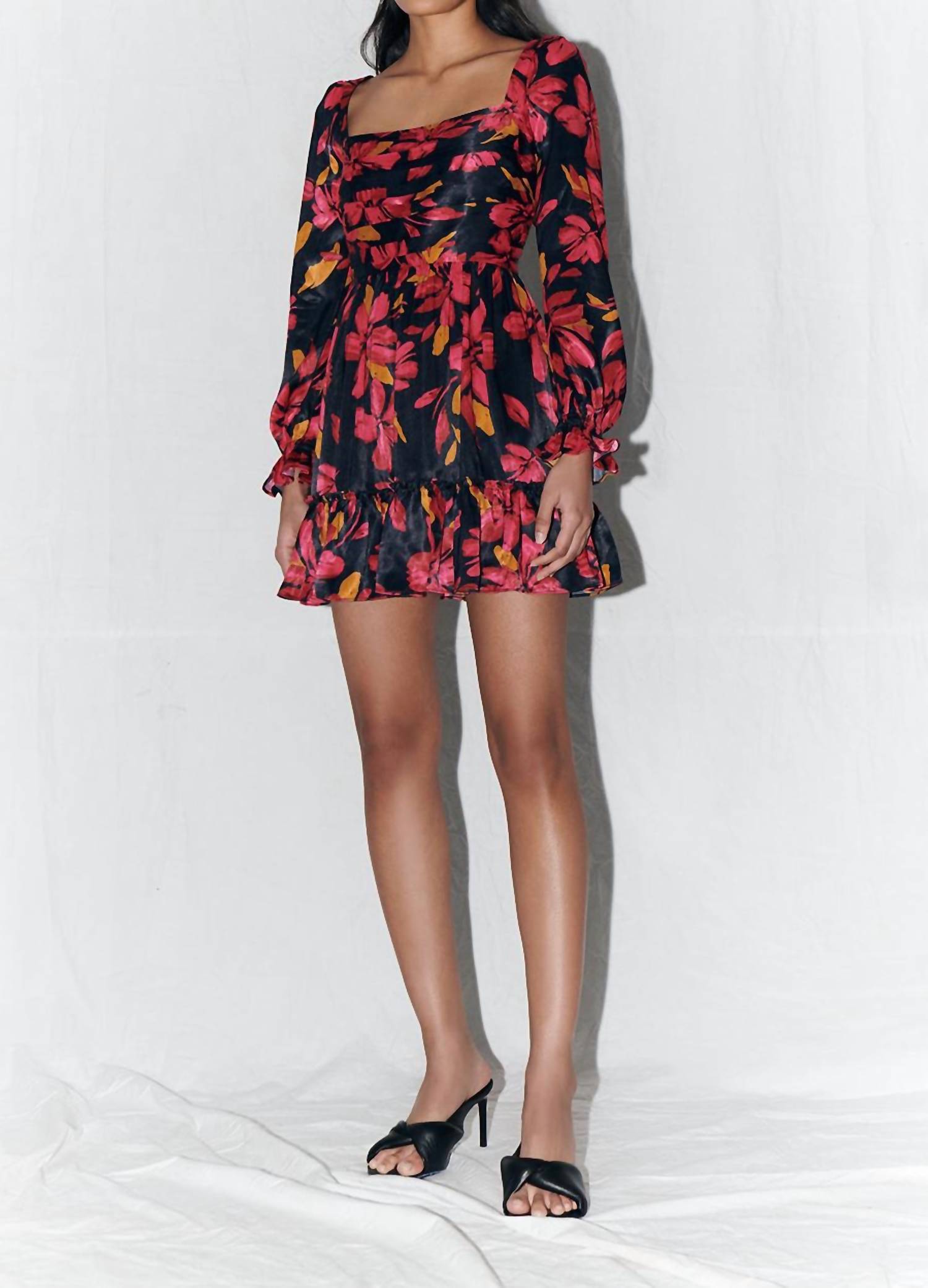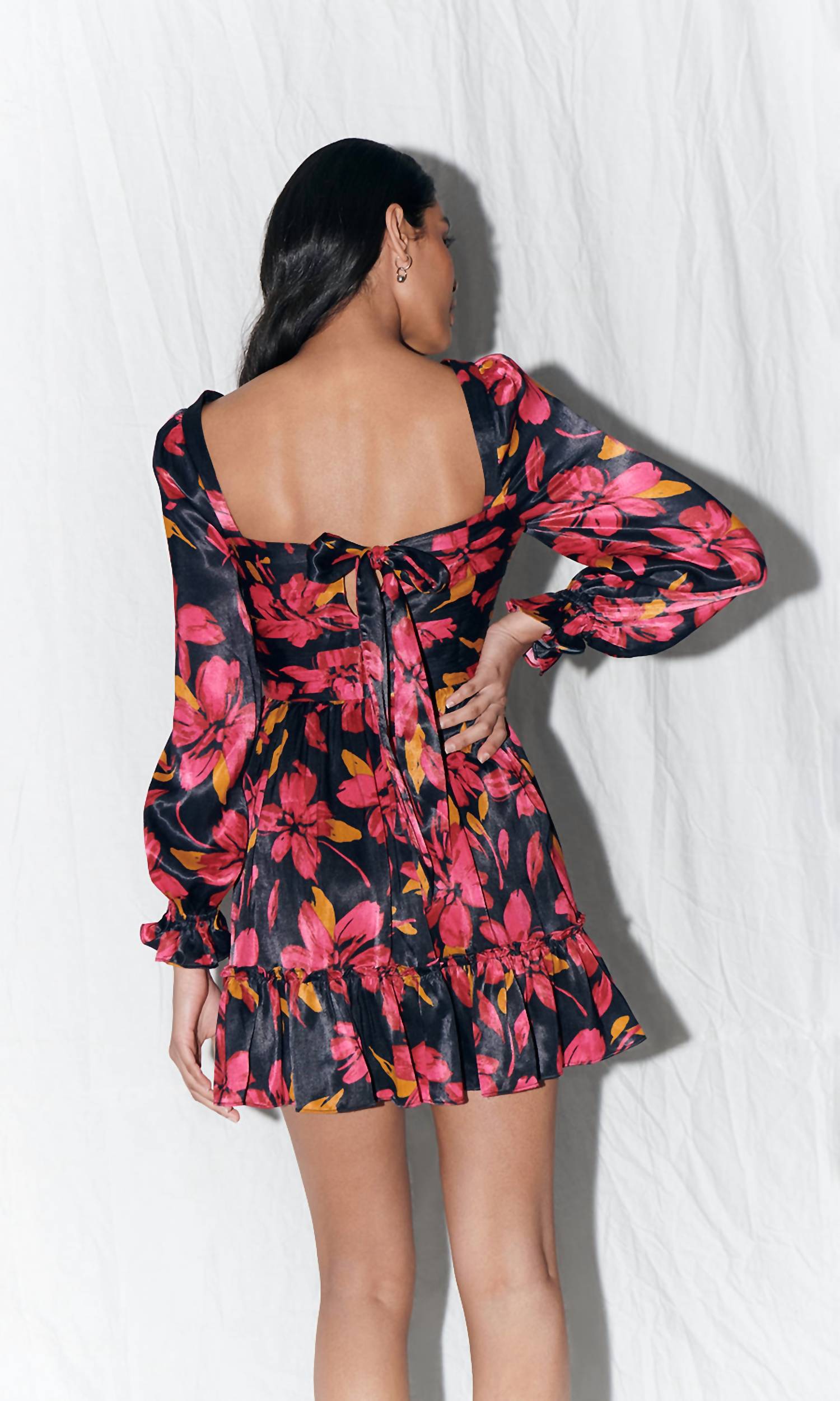 A short and breezy dress for those warmer days. Introducing the Fritz Mini Dress by Saylor, an essential piece for your spring wardrobe with a chic squareneck and long sleeves. Crafted from 100% eco viscose with a polyester lining, this floral print dress embraces the boho chic trend perfectly. Originating from India, it features a convenient side zip closure for a seamless fit. Designed for special occasions like a holiday party, care for this dress by dry cleaning only.