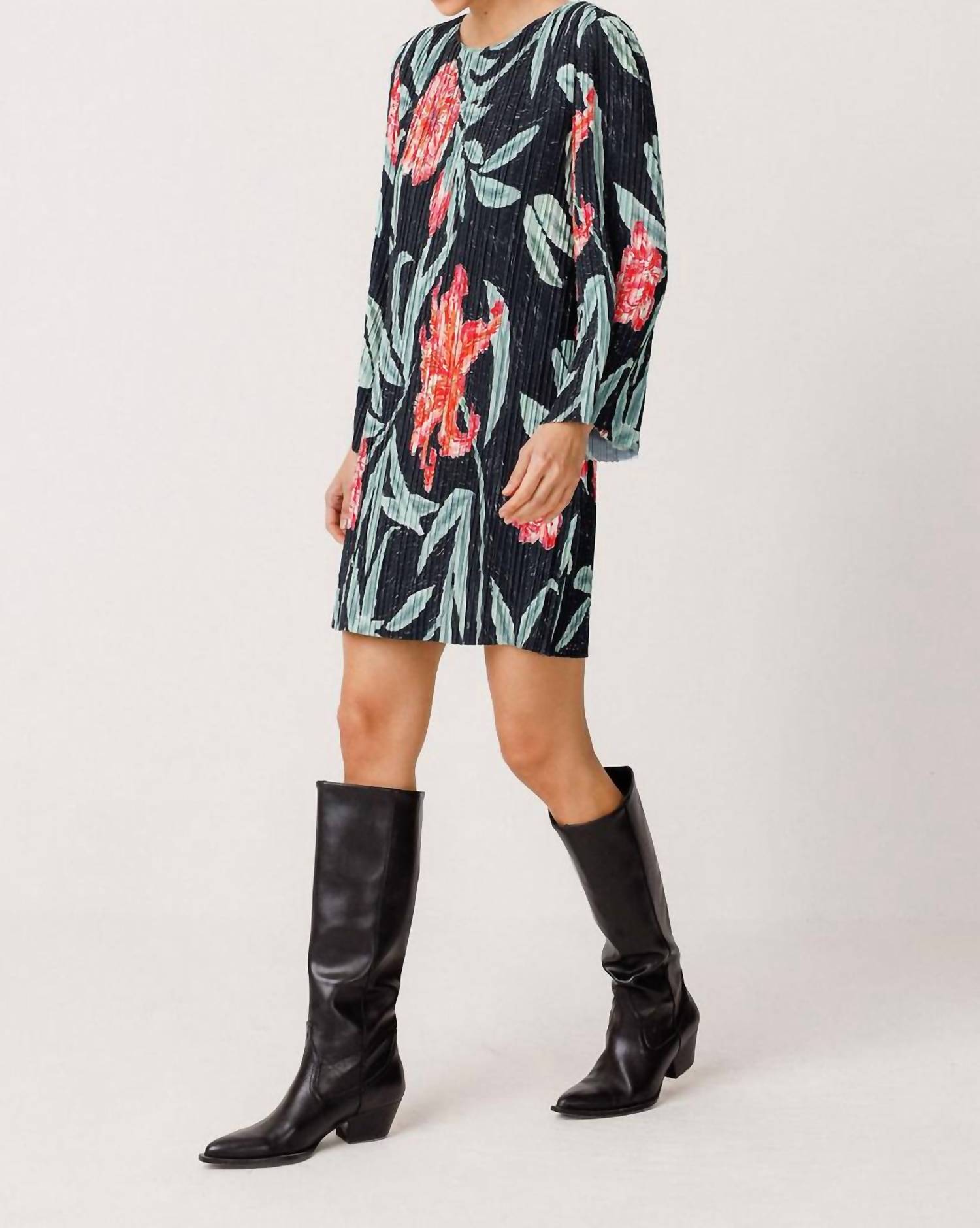 A short and breezy dress for those warmer days. Unveil your boho chic spirit with the Dima Floral Mini Dress by SKFK, a vibrant multi-colored essential for any spring evening event. This elegant shift silhouette features a classic crewneck and long sleeves, crafted entirely from 100% sustainable fibers that embrace both style and eco-consciousness. Designed for effortless wear, the dress offers a convenient pull-on closure that seamlessly complements its graceful form. Care for this piece by hand washing and laying it flat to dry, preserving its beauty for many occasions to come.