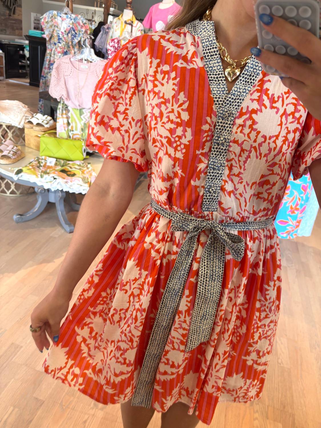 A short and breezy dress for those warmer days. Introducing the Women's Puff Sleeve Print Mini Dress by THML, a vibrant addition to your summer wardrobe perfect for vacations and special occasions. This fit and flare mini dress features playful short puff sleeves and a flattering V-neckline, finished with a button closure. Crafted in a bold floral pattern, it effortlessly combines maximalist trends with a fresh style. Make a statement with this multi-colored dress that embodies charm and elegance without the hassle of care details.