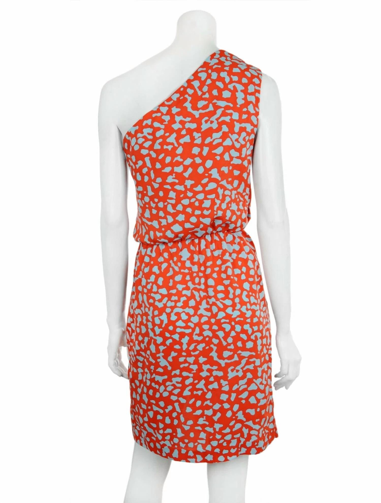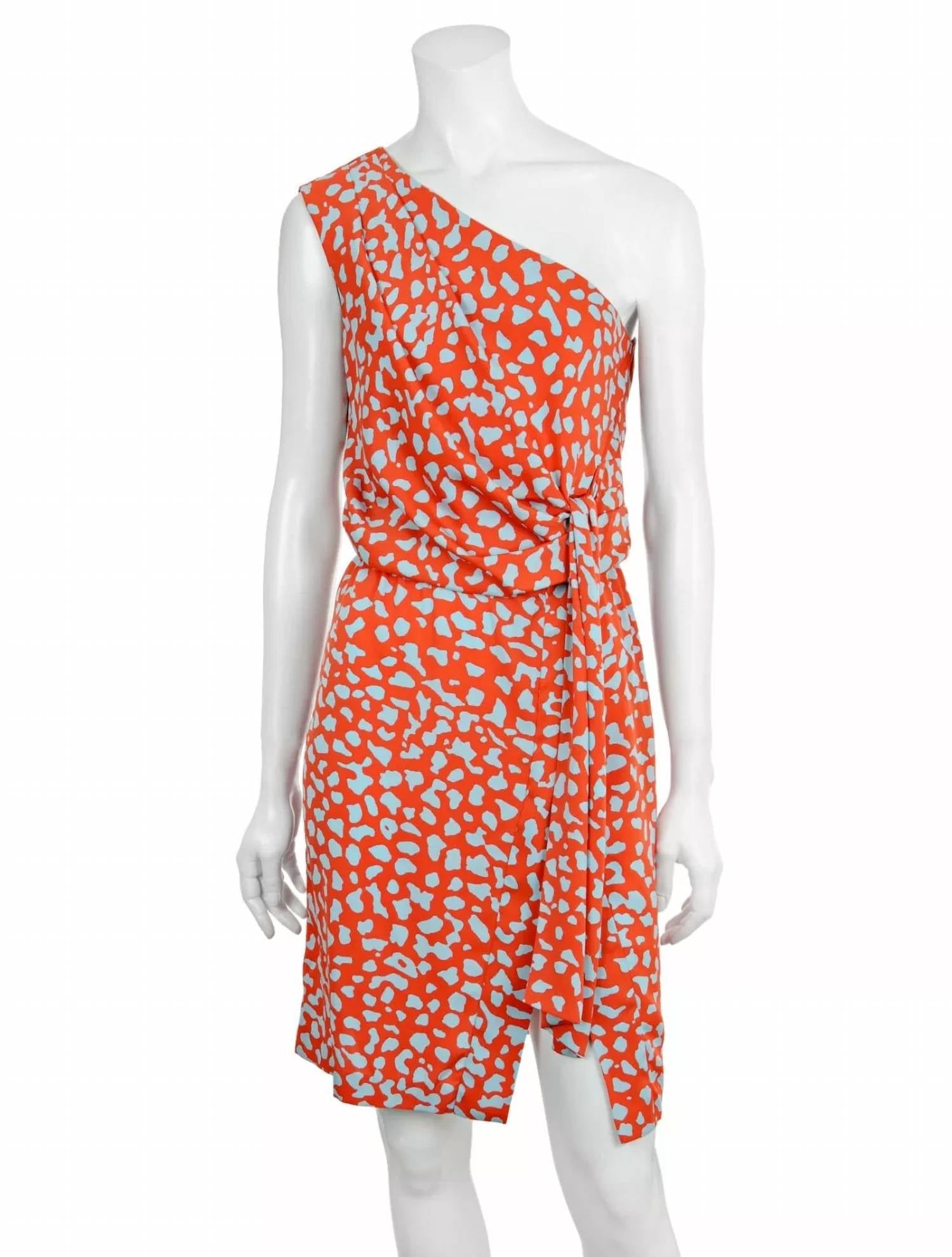 Show just the right amount of skin in this one-shoulder dress. Elevate your evening wardrobe with the Agatha Silk One Shoulder Faux Wrap Dress by Diane von Furstenberg, perfect for summer soirées. This sleeveless dress features an asymmetric one-shoulder neckline with draping and a knot detail at the front, offering a flattering faux-wrap silhouette. Crafted from a luxurious stretch silk blend of 95% Silk and 5% Lycra®, it displays a vibrant popcorn multi abstract print that exudes 90s fashion vibes. Care: Dry clean only. Ideal for women seeking a sophisticated, patterned statement piece for any evening event.