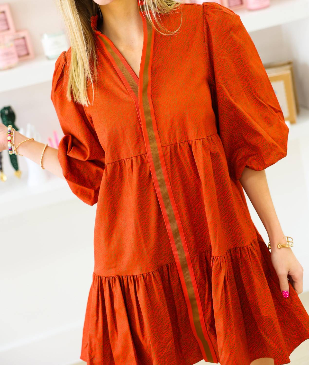 Pair with your favorite sandals for an effortlessly chic look. Enhance your wardrobe with the Emily McCarthy Sadie Mini Dress in a captivating Red Tonal Monogram. With its elbow sleeves and A-line silhouette, this patterned dress offers a sophisticated V-neck design perfect for holiday parties and spring gatherings. Closure: Pull on. Care: Hand wash and line dry.