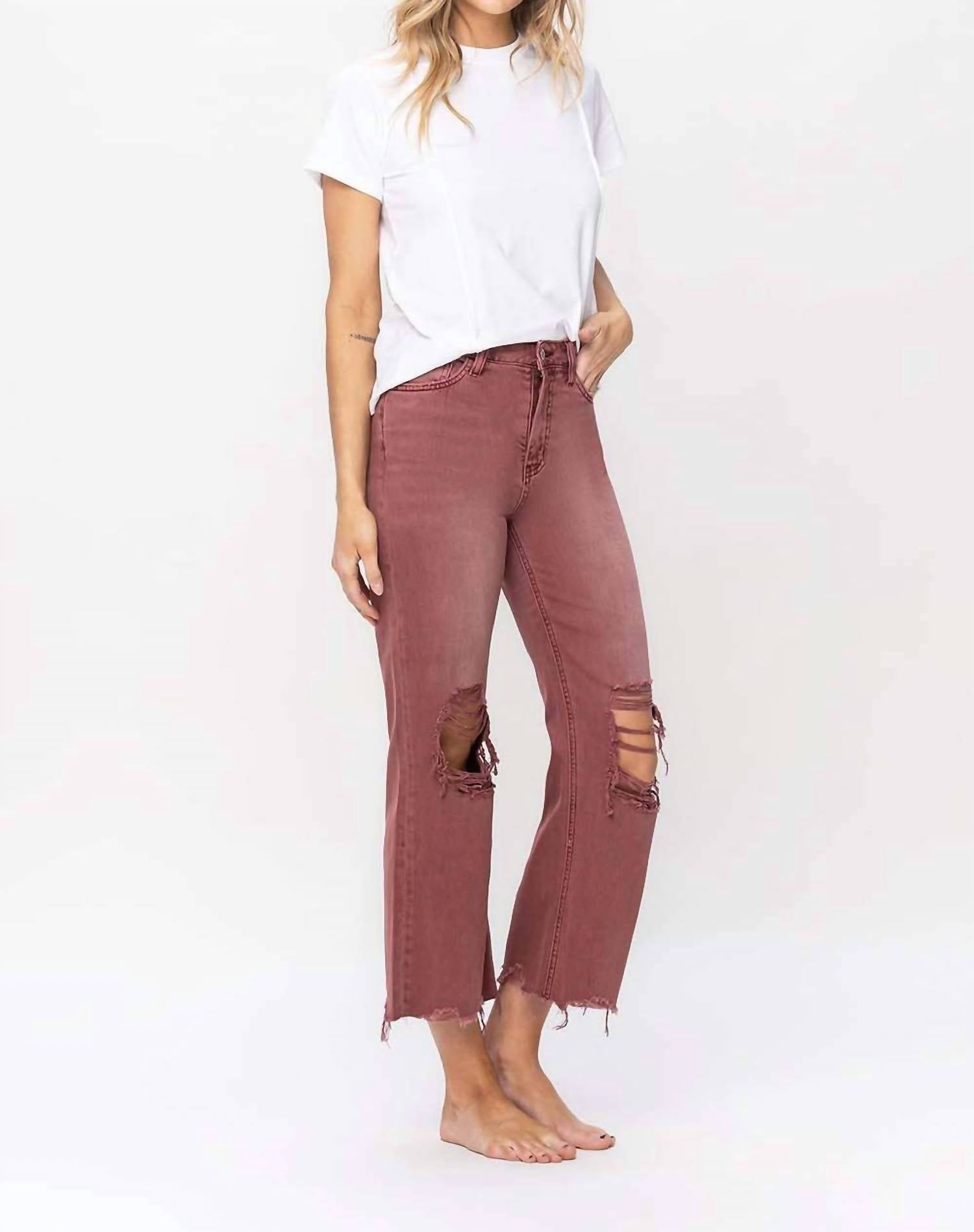 Vervet By Flying Monkey - High Rise Cropped Flare Distressed Jeans