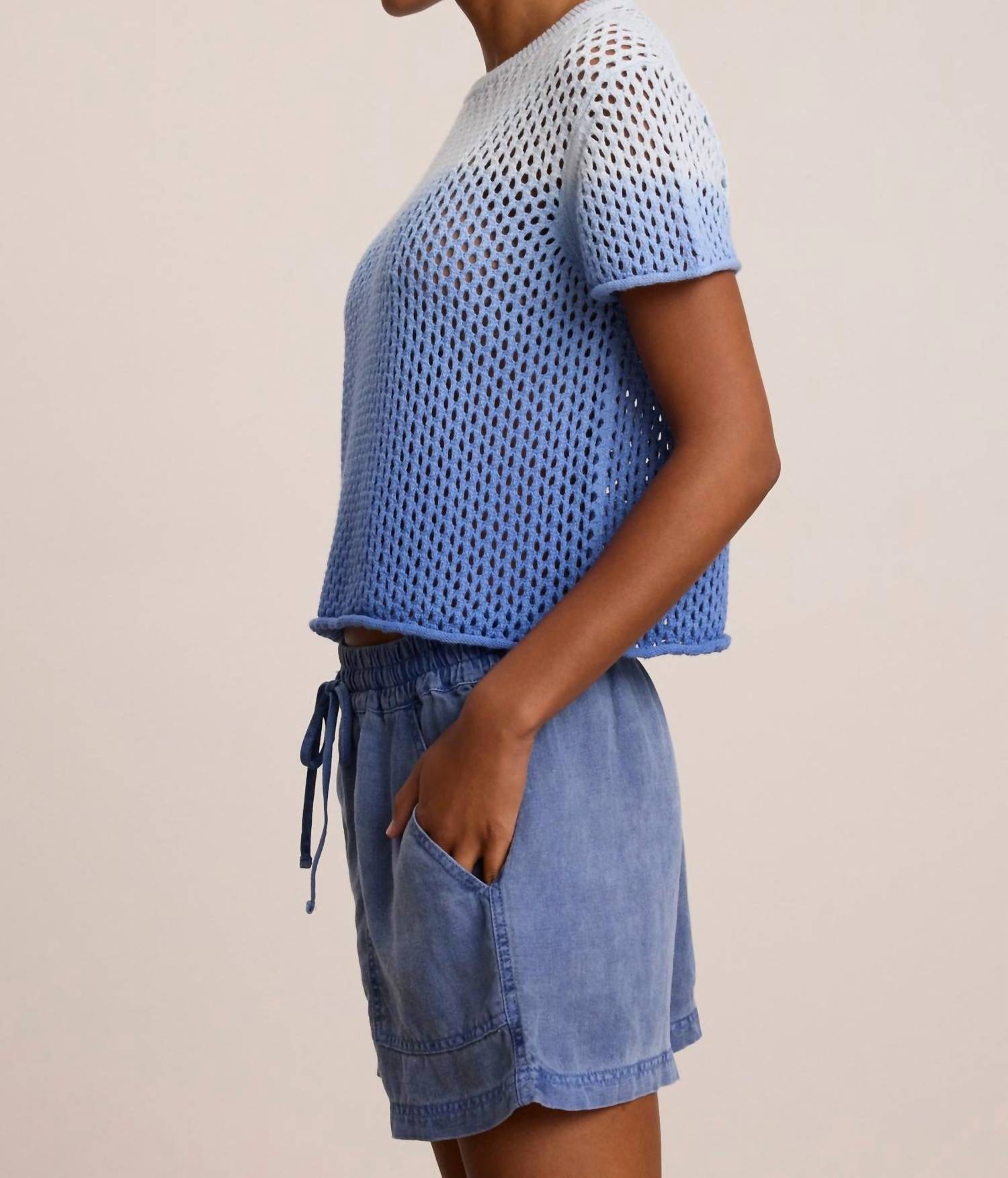 A timeless blouse that will never go out of style. Elevate your summer wardrobe with the Poppy Sweater Top by Velvet by Graham & Spencer, a chic addition perfect for vacation wear. Featuring short sleeves and a textured pattern, this crewneck blouse in Horizon boasts a luxurious cotton blend composition of 95% cotton and 5% cashmere. Expertly crafted in China, this pull-on top embraces the Boho Chic trend without the fuss of closures or pockets. Ensure longevity by following the dry clean care instructions.