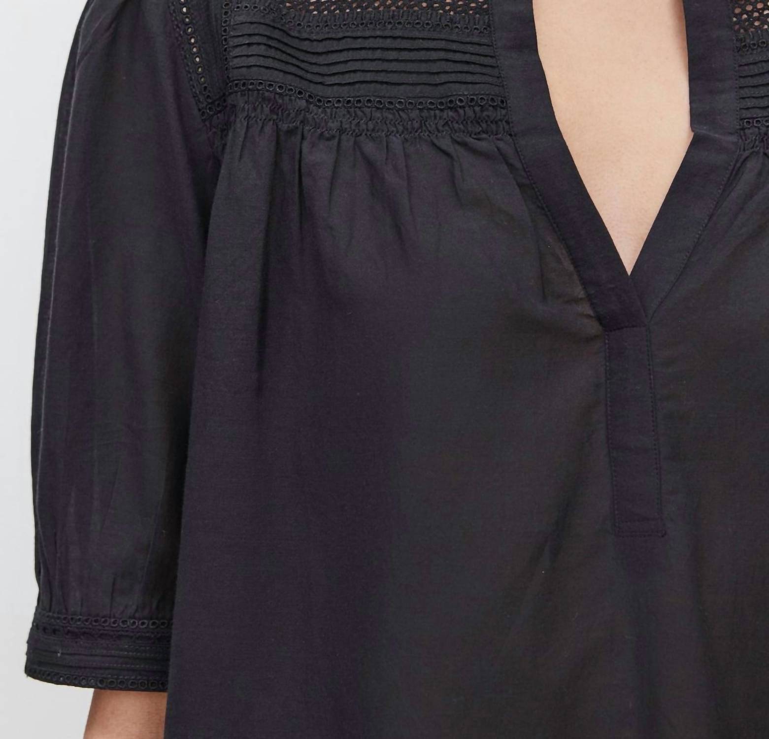 Pair this with your favorite jeans and slides for your next girls night out. Introducing the Marci Embroidered Split Neck Top by Velvet by Graham & Spencer, a beautiful blend of boho chic and elegance in classic black. This women’s blouse features three-quarter sleeves and a flattering A-line silhouette, with delicate embroidered lace details. Crafted from a cotton blend with a subtle sheer finish, it’s a versatile choice for both casual and dressy occasions. Originating from India, it offers a pull-on closure and requires hand washing for care.