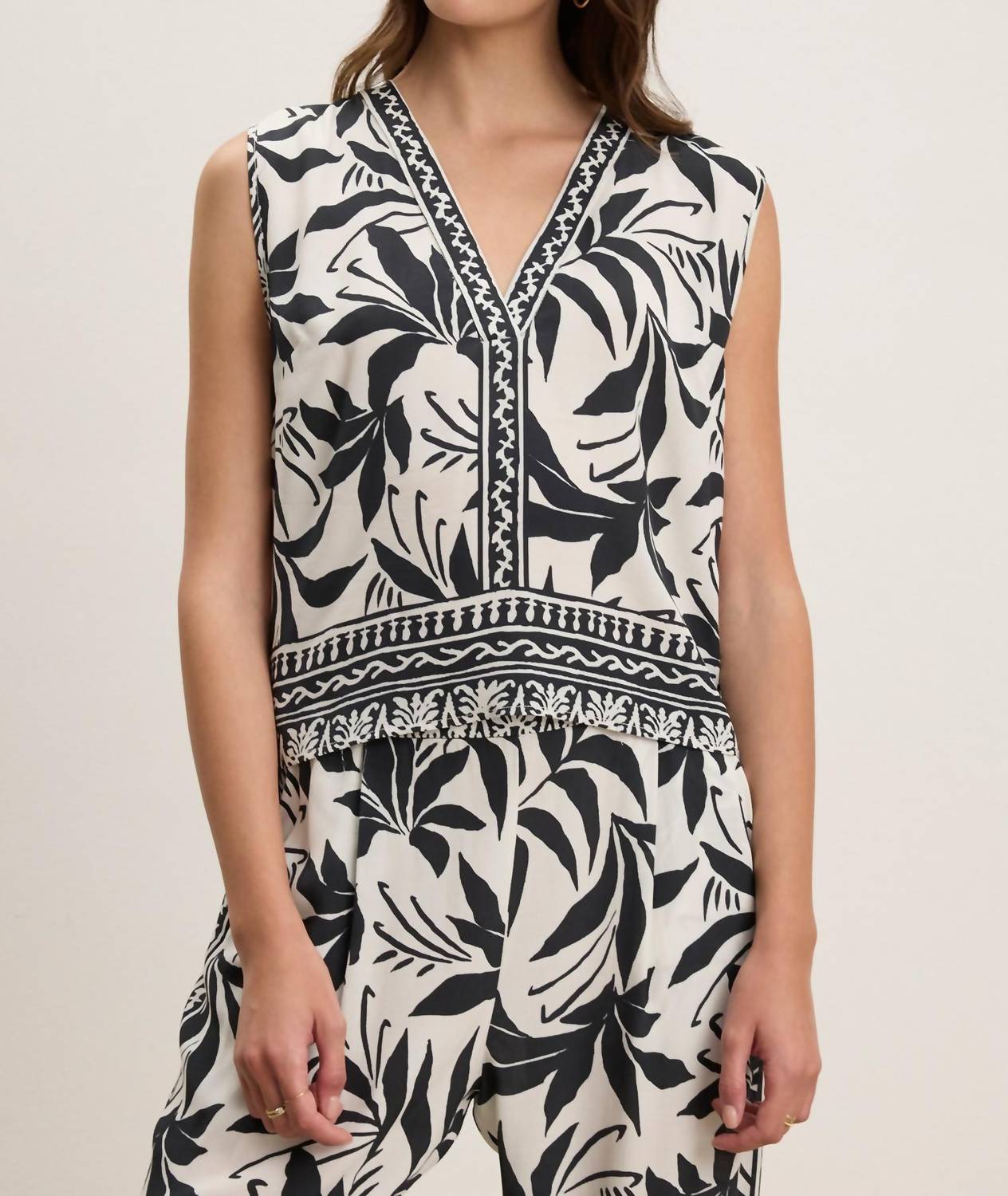This classic tank top is perfect for layering and cute enough to wear on its own. Elevate your summer wardrobe with the Lindsay Fiji Print Tank by Velvet by Graham & Spencer, designed for vacation-ready ease. This sleeveless top showcases a flattering V-neckline and is crafted from 100% lightweight viscose, offering a breezy, printed style that's perfect for warm-weather days. Made in India, this boxy silhouette adds a touch of effortless charm to any ensemble. Enjoy the simplicity of a pull-on closure and maintain its beauty with machine wash care.