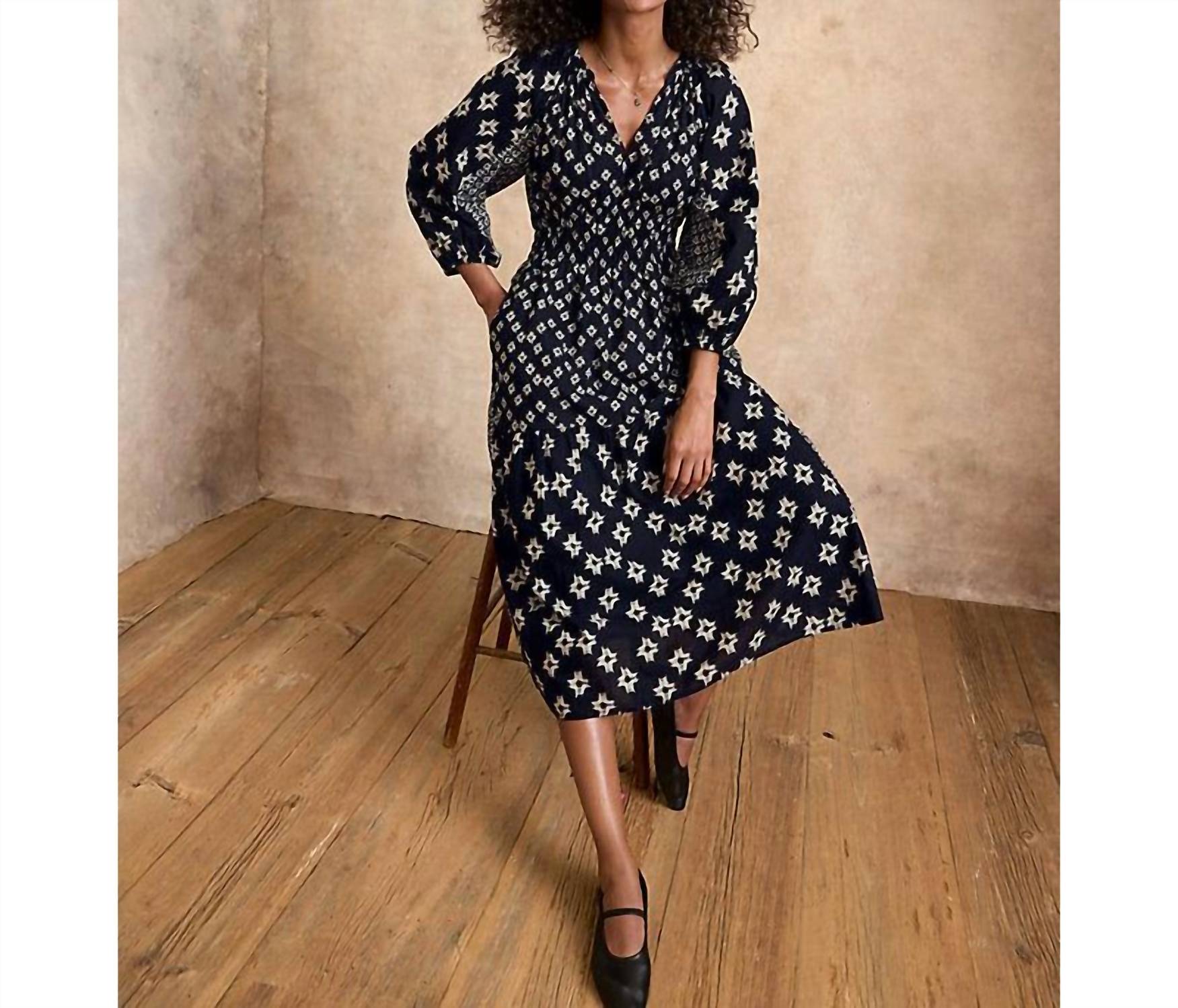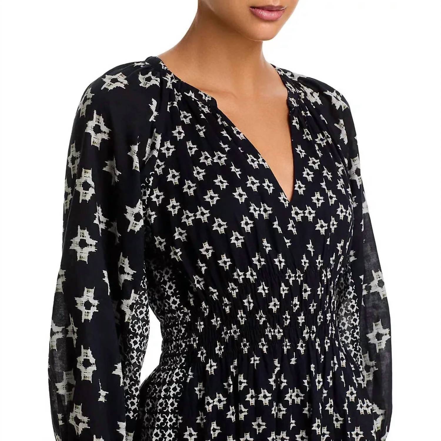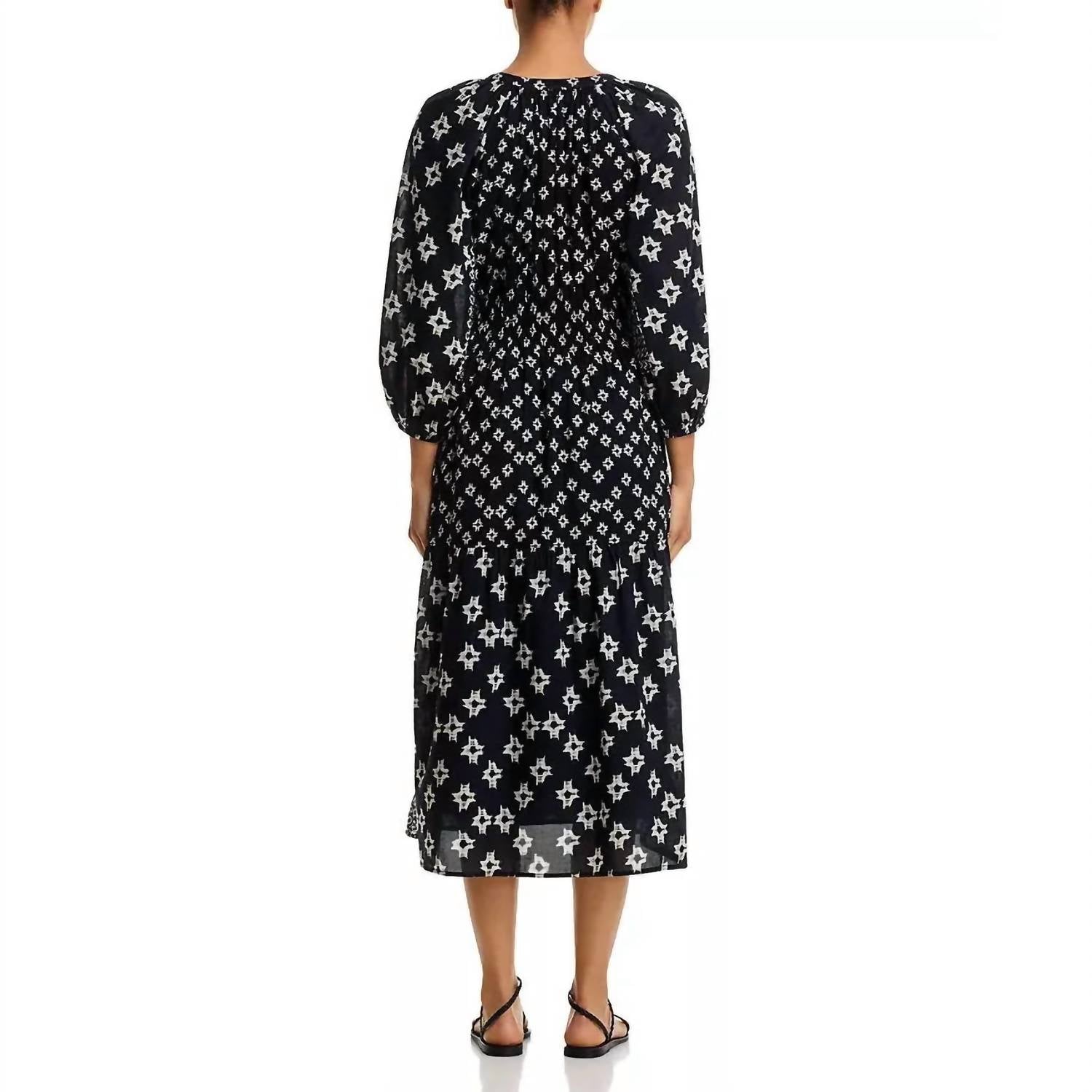 A midi dress so versatile, your options for wearing it are endless. Discover the Elen Midi Dress by Velvet by Graham & Spencer, a stylish choice for your special occasions. Featuring a V-neck and puffed three-quarter length sleeves, this dress elegantly showcases an allover print. Made from 100% cotton and designed in India, it boasts an elasticized waist and convenient front button closures. Measuring approximately 48.25" from the back of neck to hem for size small, it is machine washable, promising both ease and elegance for your wardrobe.