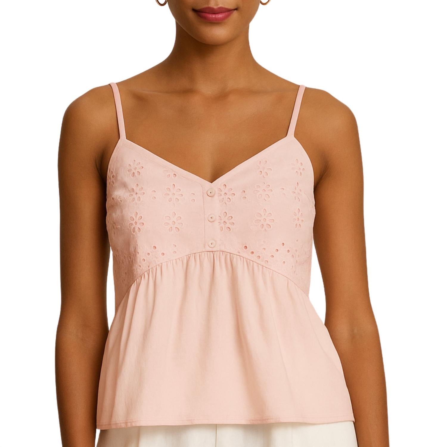 The perfect tank top for those warmer weather seasons. Velvet Aliah Eyelet Tank Top Cotton in Ballet Eyelet Detailing Three button front Tiered Silhouette Machine Wash Size S length 21.7” True to size Made in the U.S.A.