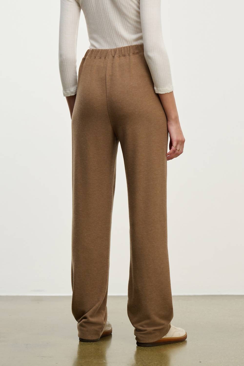 A perfectly tailored straight leg that you'll want in every color! Elevate your loungewear with the Eliya Straight-leg Pant by Velvet by Graham & Spencer, crafted for relaxed yet sophisticated style in cognac. These ultra-soft sweatpants boast a high-rise, rear elastic waistband and convenient side seam pockets, ensuring comfort and practicality throughout your day. Made from a premium triblend of 47% Polyester, 47% Viscose, and 6% Elastane, they offer a straight-leg silhouette perfect for casual outings or lounging. Made in the USA, these pants require dry cleaning to maintain their sleek, modern look.