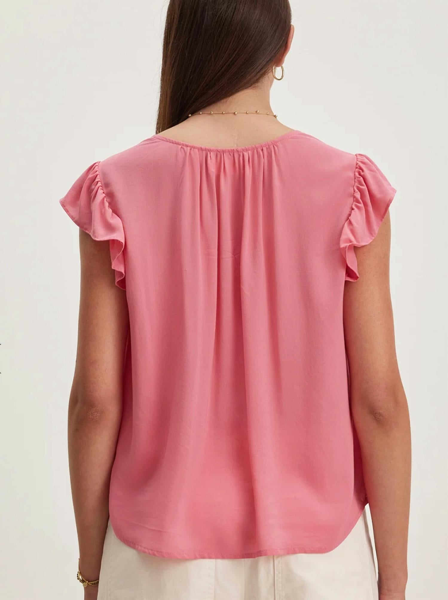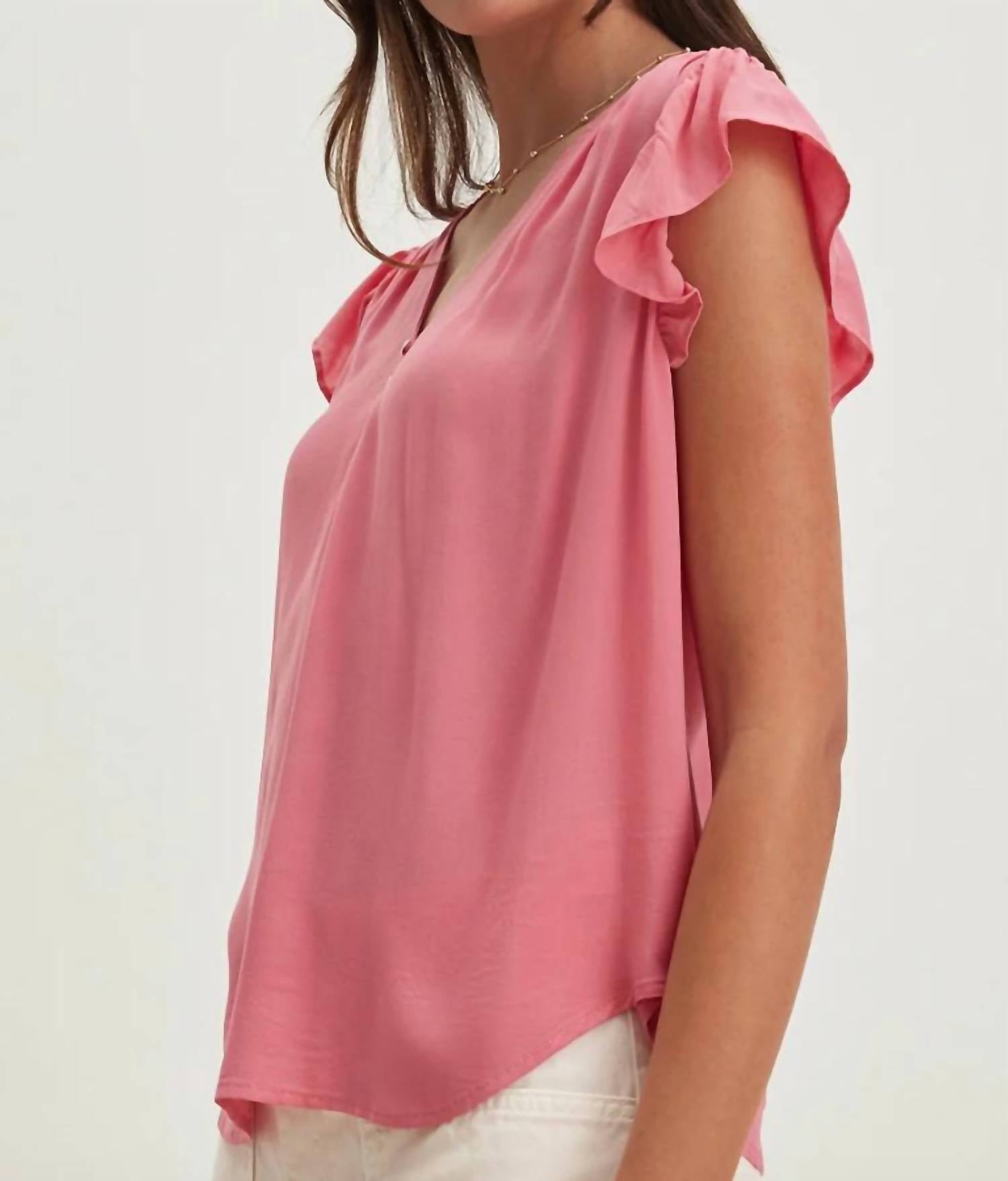 A timeless blouse that will never go out of style. The Malta Short Sleeve Top by Velvet by Graham & Spencer is an elegant piece designed for a relaxed yet sophisticated look. Featuring short flutter sleeves and a v-neckline with three-button detailing, this top adds a polished touch to your wardrobe. Crafted from lightweight rayon challis in a Lady Slipper hue, its boxy silhouette enhances its versatility for any occasion. Closure: Pull on. Care: Hand wash.