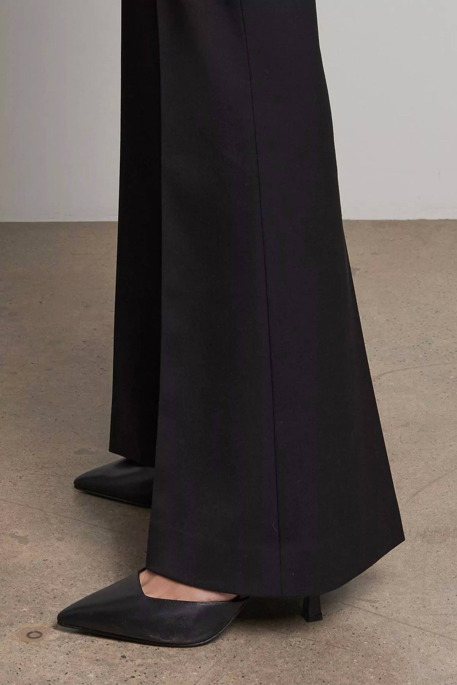 Introducing the Mariposa Pant by Velvet by Graham & Spencer, a sophisticated addition to your evening wardrobe. These pants showcase a timeless flared leg with front and rear pleats for added elegance. Crafted from a stretchy polyester blend, they are designed with a tailored hook-and-bar, zip closure, and belt loops for a secure fit. Originating from China and featuring convenient buttoned rear welt pockets, they promise both comfort and style. Composition: 64% Polyester, 33% Rayon, 3% Elastane. Care instructions recommend dry cleaning.