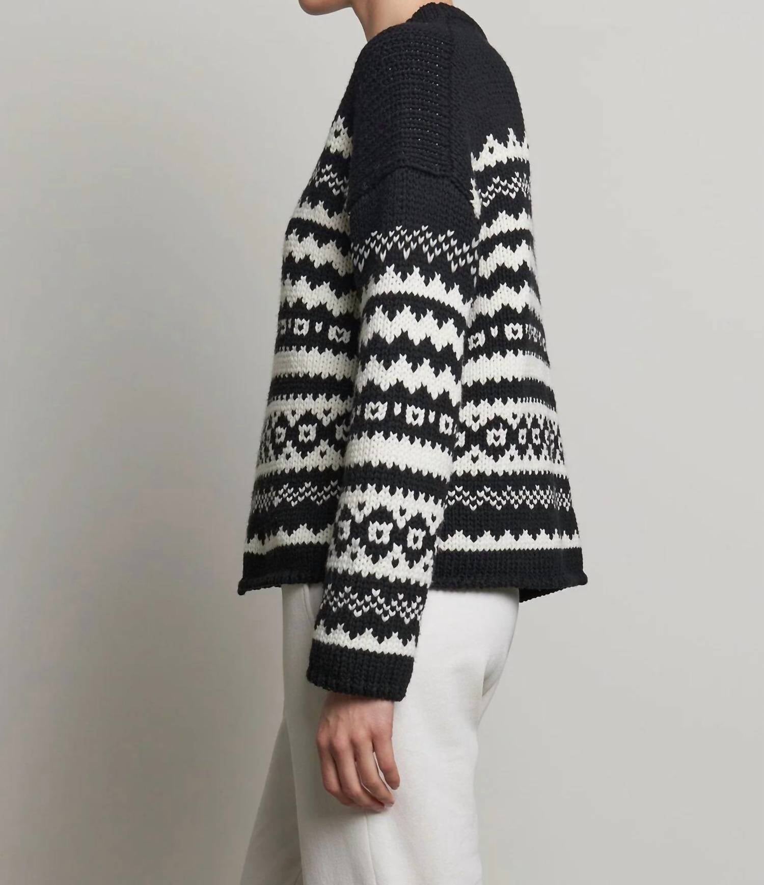 Experience the perfect blend of comfort and style with this trendy crew neck sweater, designed to effortlessly elevate your wardrobe. Pair it with your favorite denim and loafers for the perfect look. The Maywood Chunky Fair Isle Sweater by Velvet by Graham & Spencer is a timeless addition to your winter wardrobe. This black and milk patterned sweater features a mock neckline with long sleeves, offering a chunky relaxed fit perfect for effortless travel style. Made with Fairisle pattern, it's designed for those who appreciate both comfort and fashion.