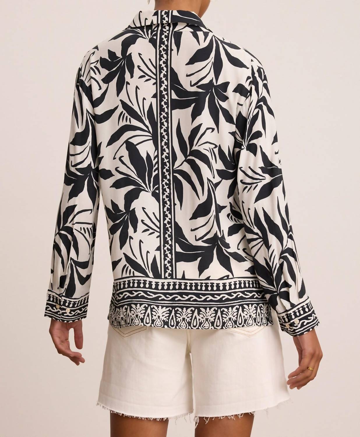A classic button down shirt that will never go out of style. Elevate your vacation wardrobe with the Sienna Long Sleeve Shirt by Velvet by Graham & Spencer, featuring a striking black-and-white tropical leaf print. Crafted from lightweight viscose, this flowy button-up boasts a pointed collar and natural shell buttons for a relaxed silhouette. Sleeve Length: Long Sleeve. Closure: Button closure. Care: Machine wash. Perfect for a boho chic summer look, pair it with denim for casual outings or style it up for a resort-ready ensemble.