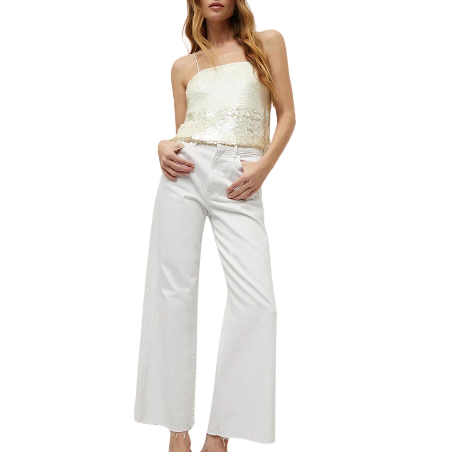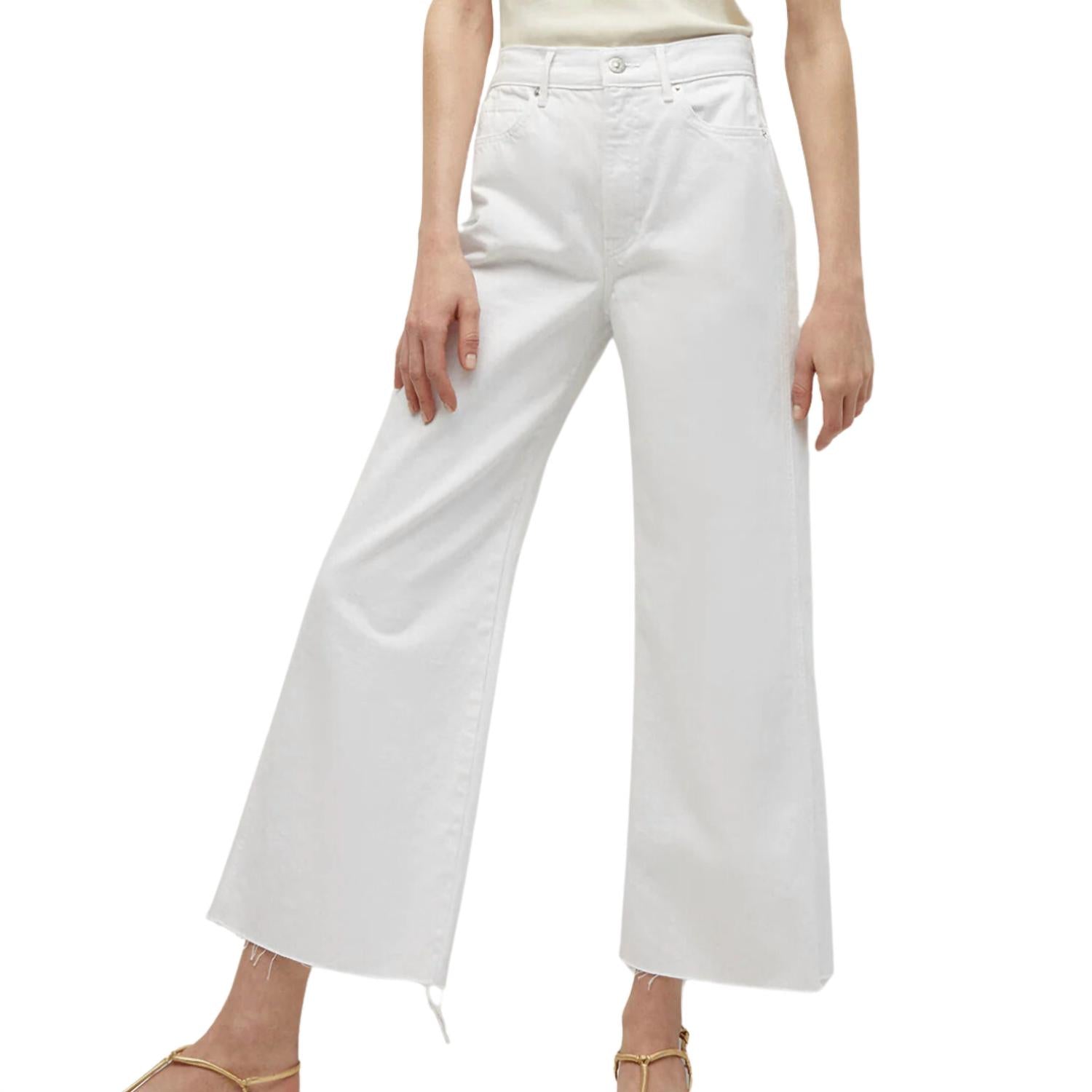 Veronica Beard Taylor Cropped Wide-Leg Jean Cotton in White Wide Leg Jeans High Rise Cropped Frayed Hem Non-Stretch Japanese Denim Front Patch Pockets White Wash Size 26 Measurements Rise 12" Inseam 27" Leg opening 22" Machine Wash Cold Made in Los Angeles, C.A.
