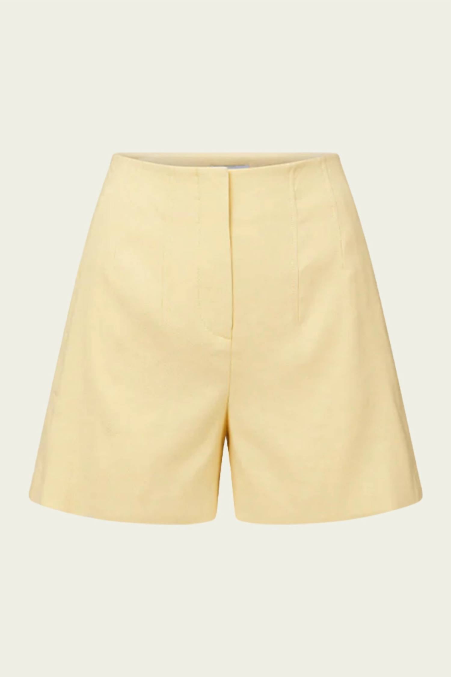 Fit to perfection, we love these high-waist shorts and you will too. Introducing the Brit Stretch-Linen Short by Veronica Beard, a chic addition to your warm-weather wardrobe. These high-waist shorts are crafted from a comfortable blend of 55% Linen, 44% Viscose, and 1% Elastane, with a lining of 100% Polyester, offering both style and ease. Made in Vietnam, they feature a convenient zip closure and pockets for functionality, perfect for holiday gatherings. Care instructions recommend dry cleaning to maintain their pristine chamomile hue.