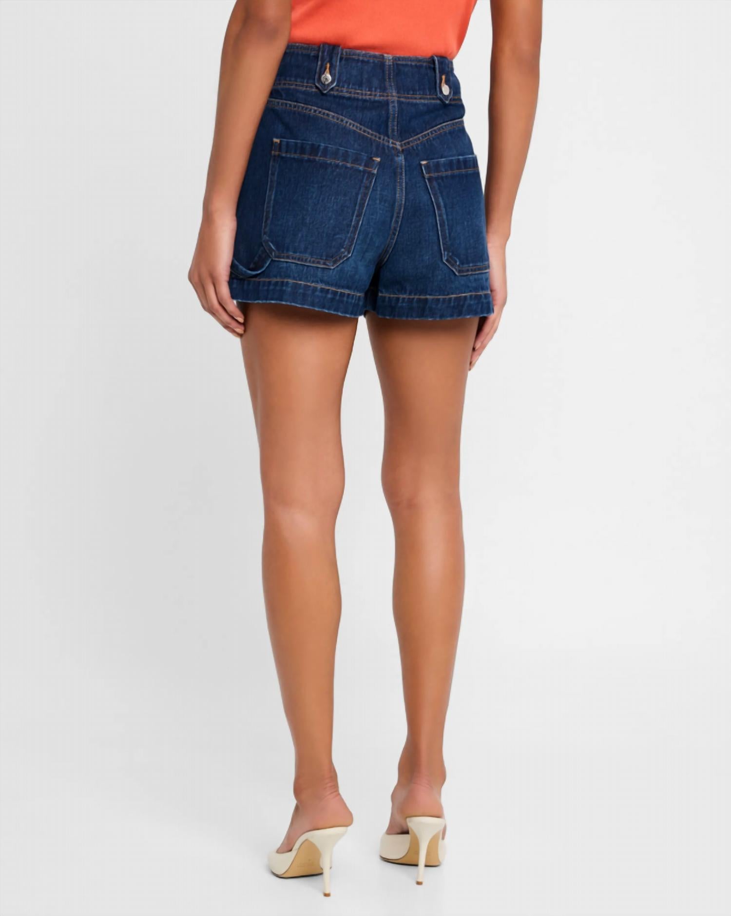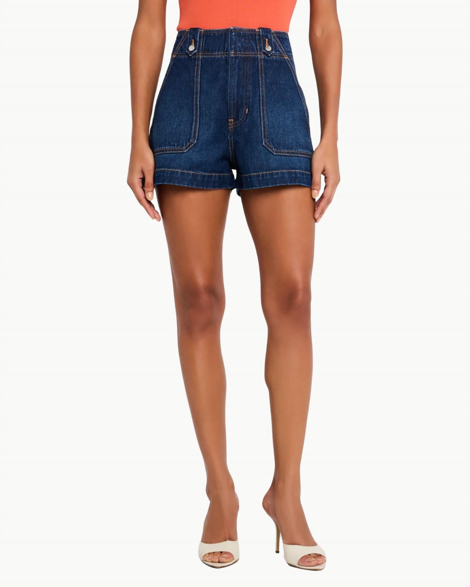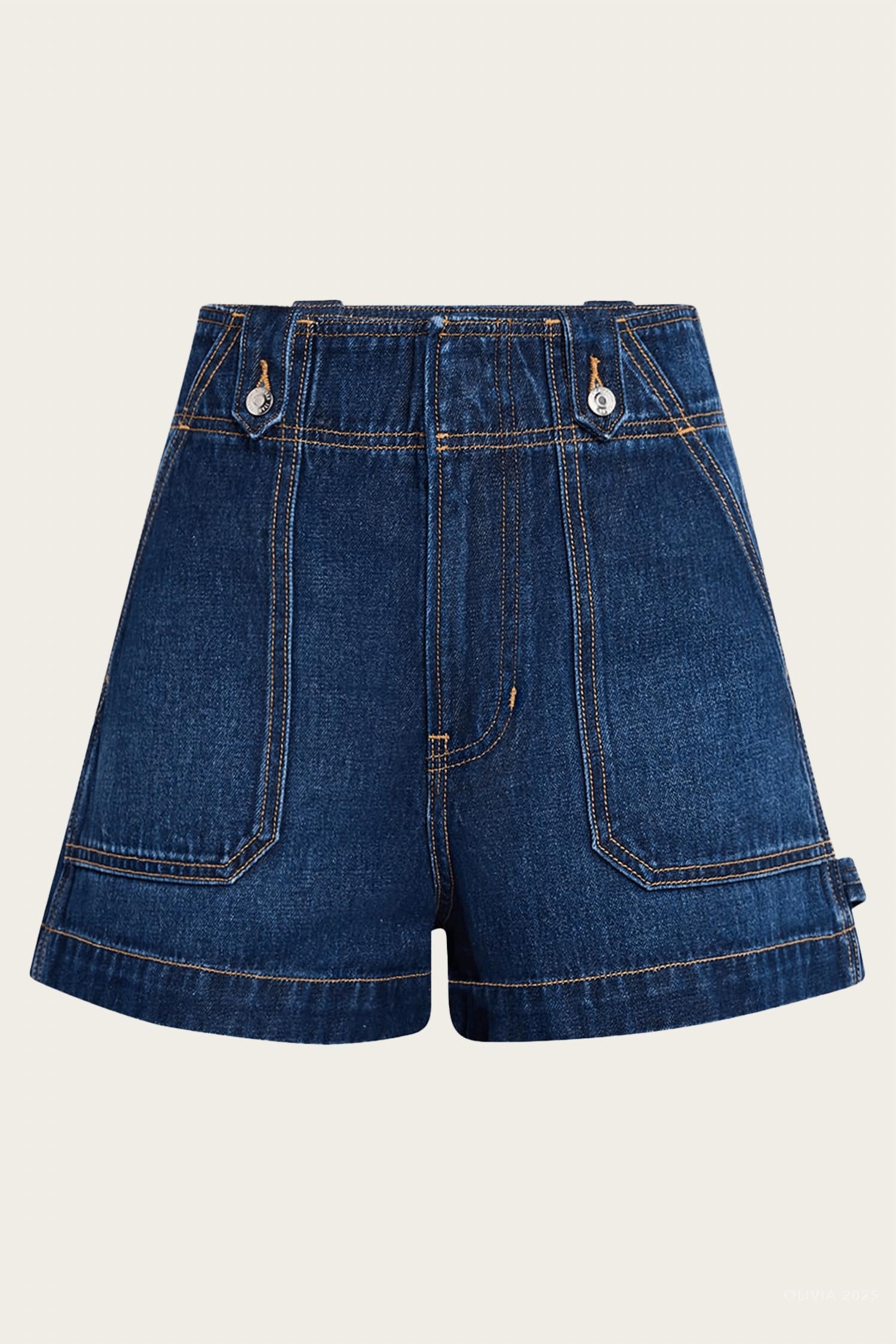 You can never have too many jean shorts and these will be your new favorites. Introducing the Graham Denim Workwear Short by Veronica Beard, a blend of comfort and utility for the modern woman. These shorts, made from 100% cotton in a bright blue hue, feature a high rise with a waist-hugging fit and an approximate 2.5-inch inseam for a flattering silhouette. Crafted in China, the design includes front and back patch pockets, belt loops, and a concealed button closure for a refined look. Care is simple with machine washing, making it perfect for the spring season.
