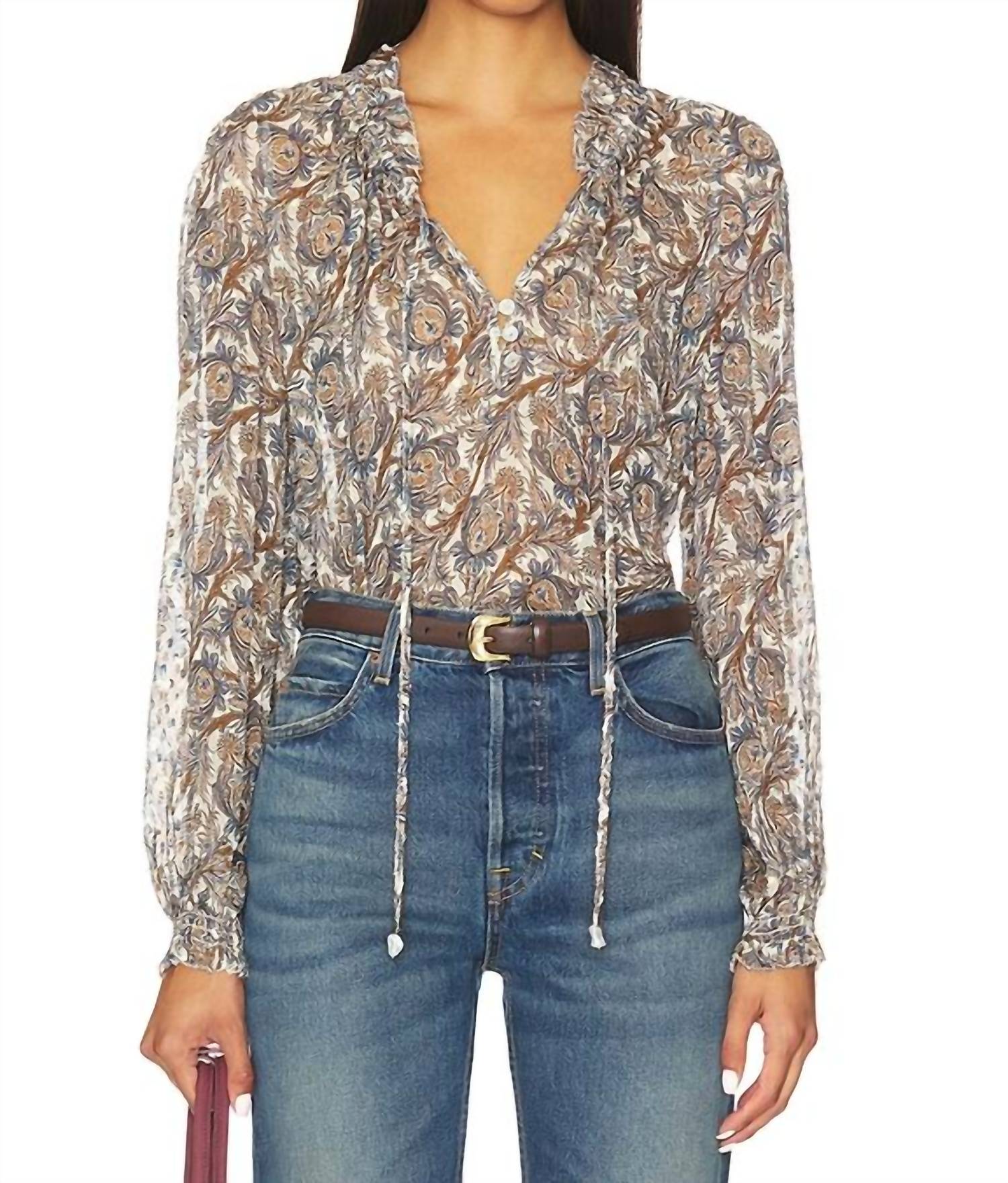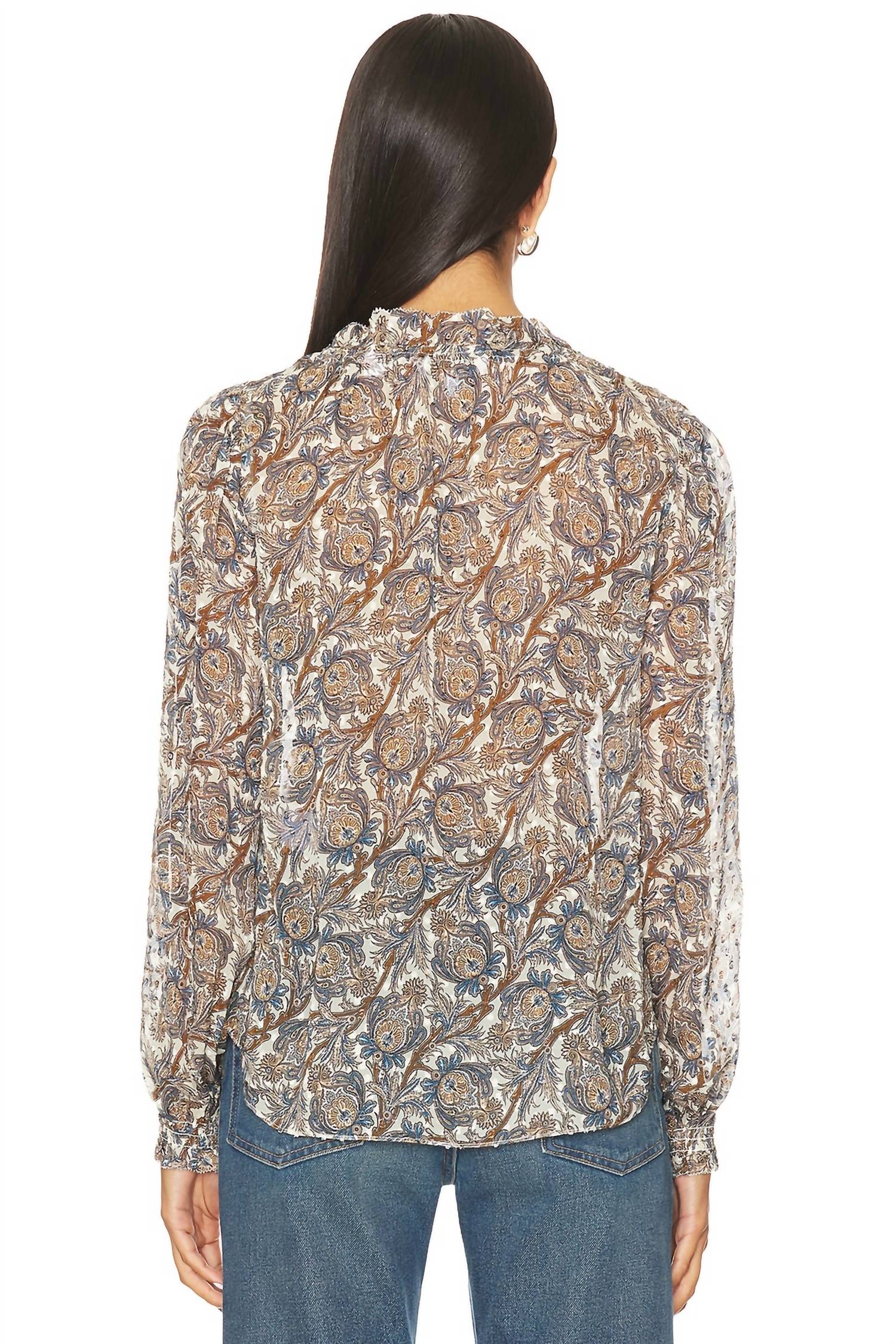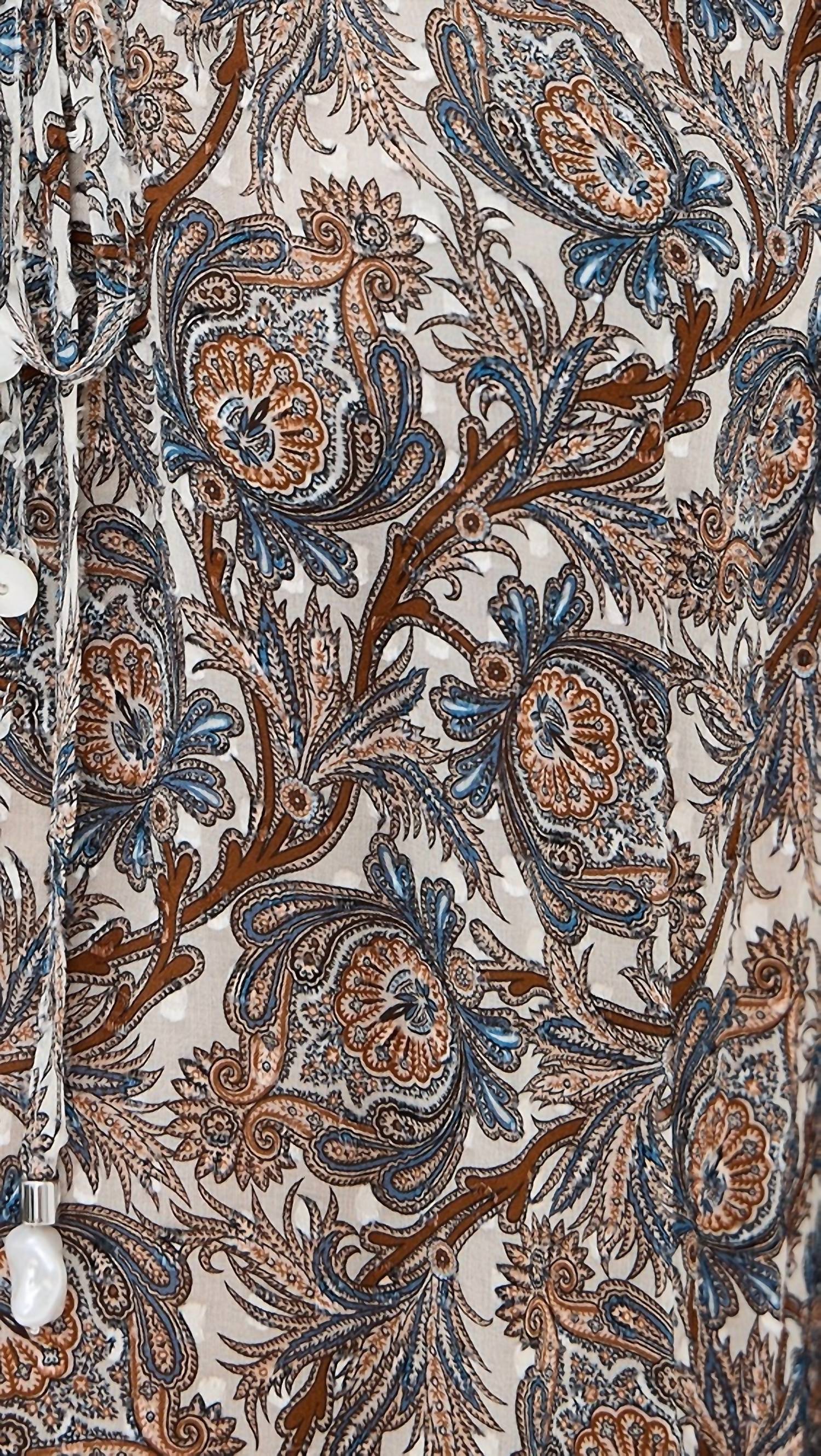 A timeless blouse that will never go out of style. Elevate your spring wardrobe with the Hickory Long Sleeve Blouse by Veronica Beard, featuring a stylish paisley pattern in Dove Multi. This blouse boasts long sleeves and a flattering V-neck, perfect for engagement occasions or Thanksgiving celebrations. Crafted from a luxurious silk blend of 80% silk and 20% viscose. Care for this boho chic staple by opting for dry cleaning.