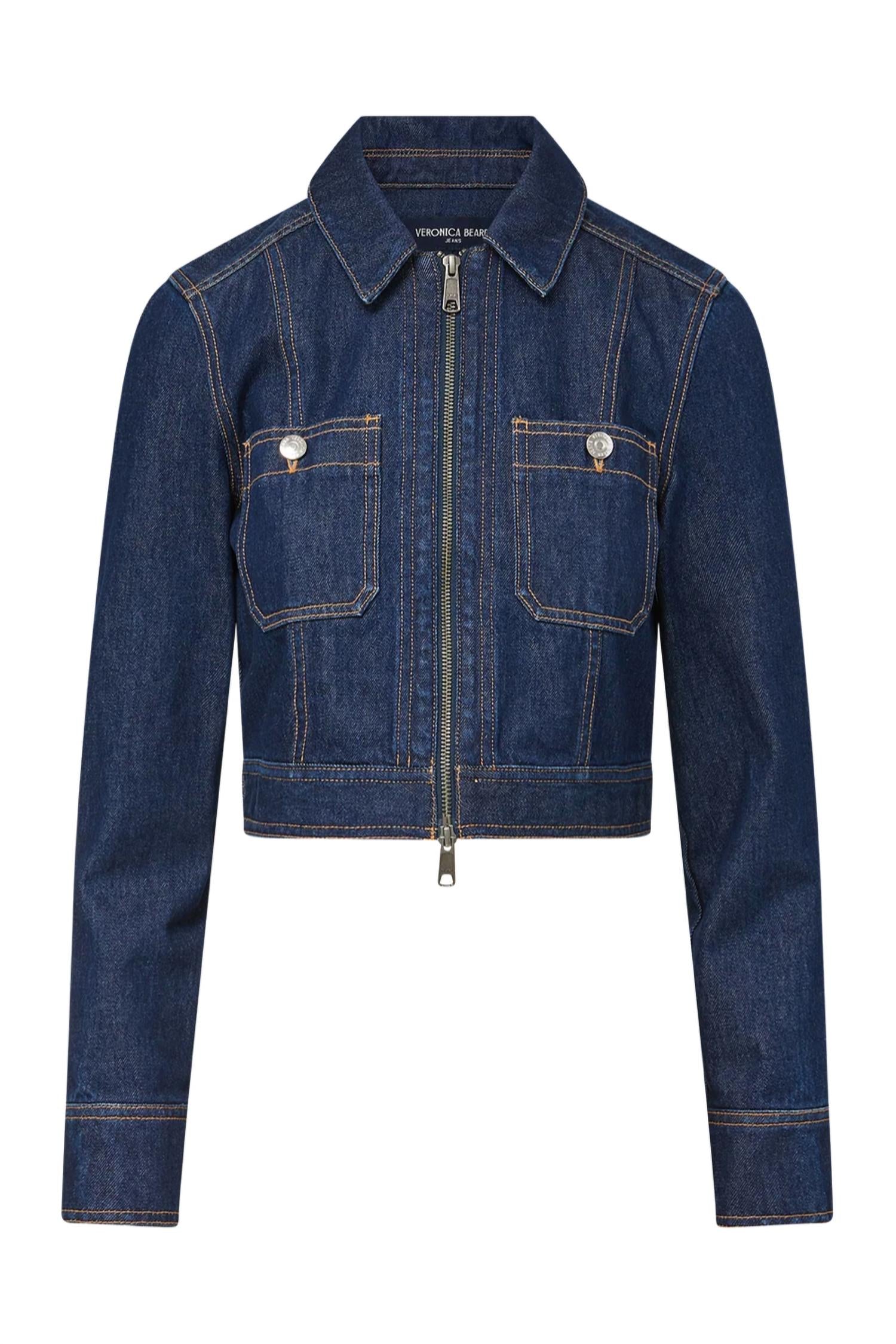 Classic, cool and works with almost any outfit choice. Meet the Patty Cropped Denim Jacket by Veronica Beard, an ideal piece for your streetwear wardrobe, perfect for a summer evening. This jacket features long sleeves and a sleek boxy, cropped silhouette with a trim collar and buttoned chest pockets. Made from 100% cotton, it highlights an indigo rinse with contrast-color topstitching. Closure: Front zip. Care: Machine wash cold inside out. Imported.