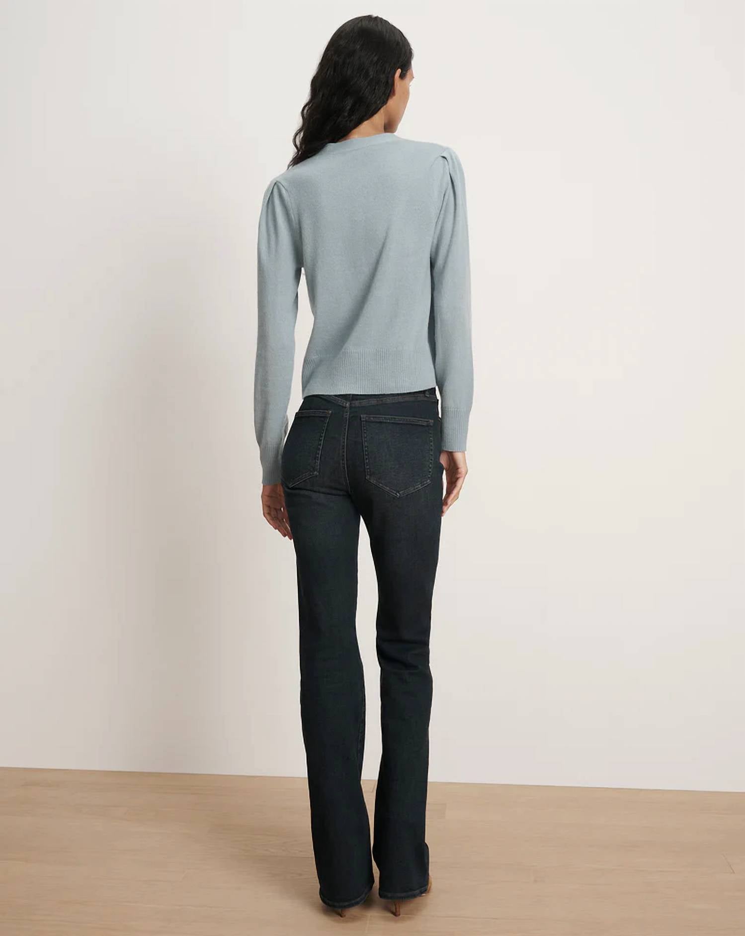 A classic fit that works just as good buttoned as it does left open. A classic cardigan is the cornerstone of any chic woman’s wardrobe, and, in 100% sumptuous cashmere with an exceptionally soft handle, our Solene is the ultimate. Finished with a V-neckline and tortoise buttons, this light blue cardigan is endlessly versatile—style with your favorite denim for an everyday look, or over an A-line maxi skirt for a more feminine feel. 100% Cashmere.