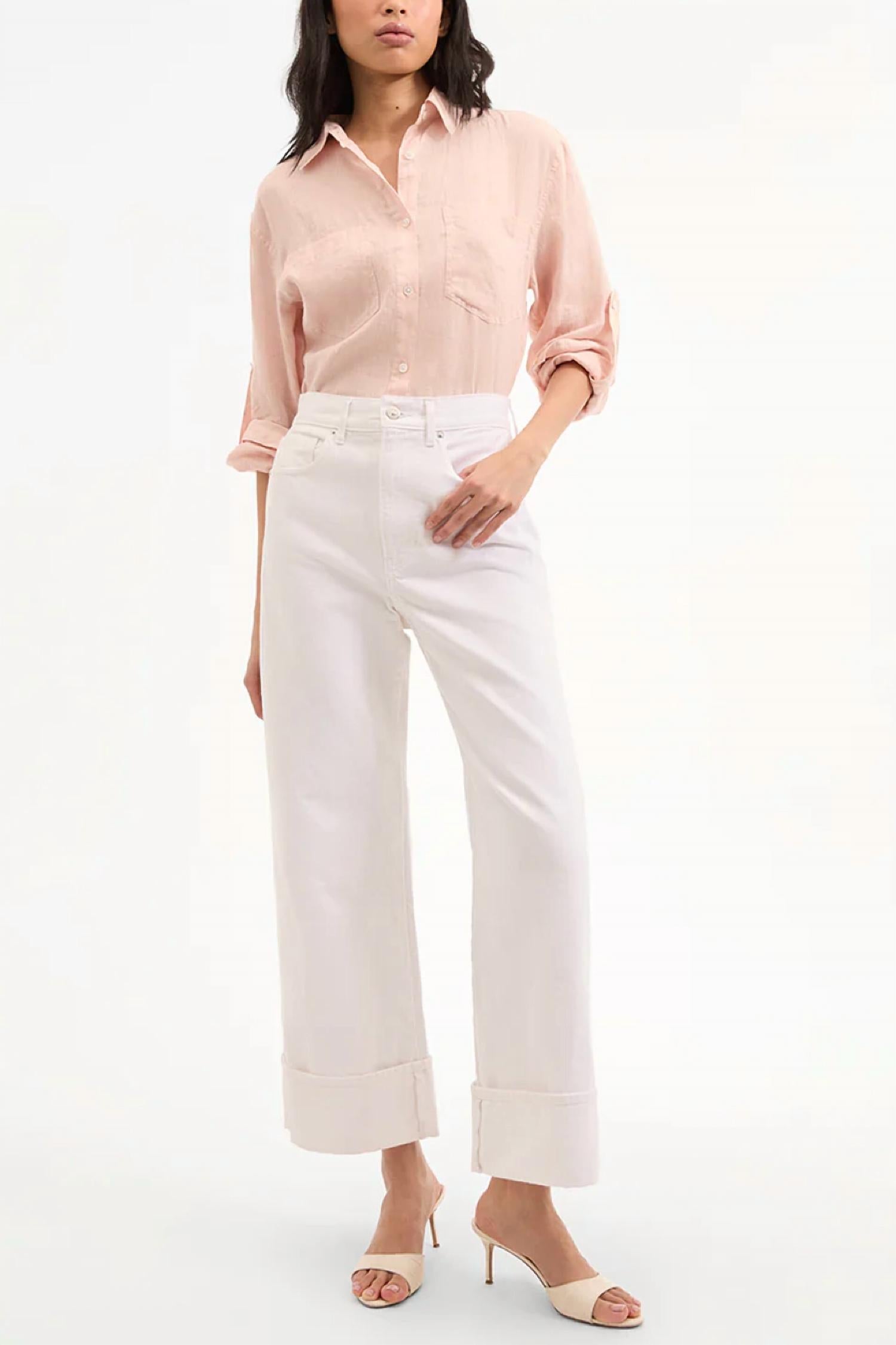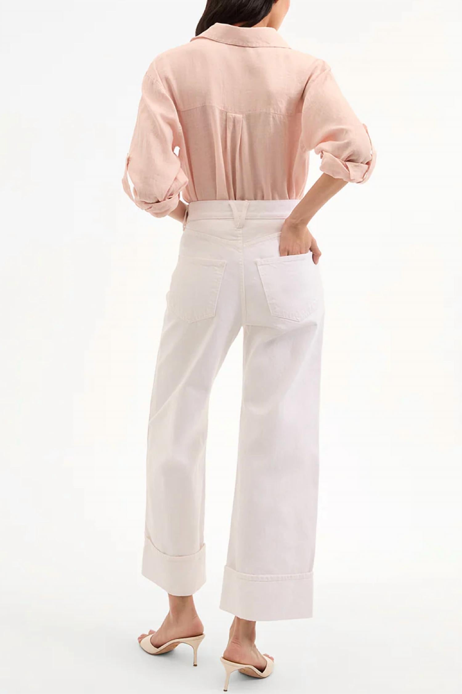 Fit to perfection, we love these high-waist jeans and you will too. The Taylor Cropped High Rise Jeans by Veronica Beard are a minimalist must-have crafted for effortless style. Made in the USA from premium Japanese denim, these jeans feature a classic fit with a wide leg and a high-rise waist, providing both comfort and sophistication. Material: 100% Cotton. Closure: Button closure. Care: Machine wash cold, hang to dry. Perfect for travel or a casual Thanksgiving gathering.
