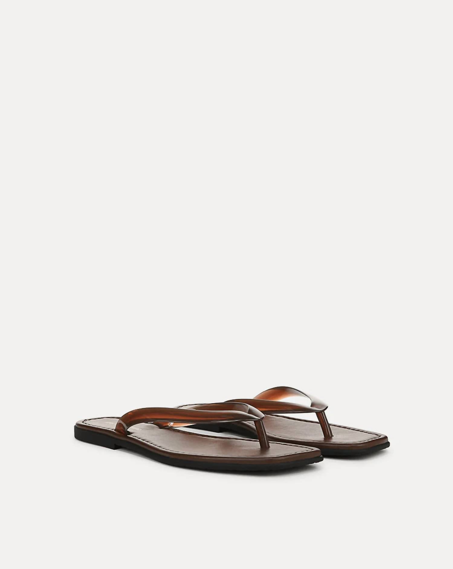 This sandal will take you from brunch to dinner and everything in between. Meet the Women's Clea Flip Flop Sandal by Veronica Beard, an elegant twist on the classic flip-flop in a chic Hazelwood shade. Designed with a luxurious leather footbed and trendy jelly straps, these open-toe sandals are perfect for your summer adventures from the beach to the boardwalk. Material: Polyurethane, Lining: Leather. Care: Store in a cool, dry place inside a dust bag and clean under specialist supervision. Ideal for women seeking comfort and style with a flat heel design.