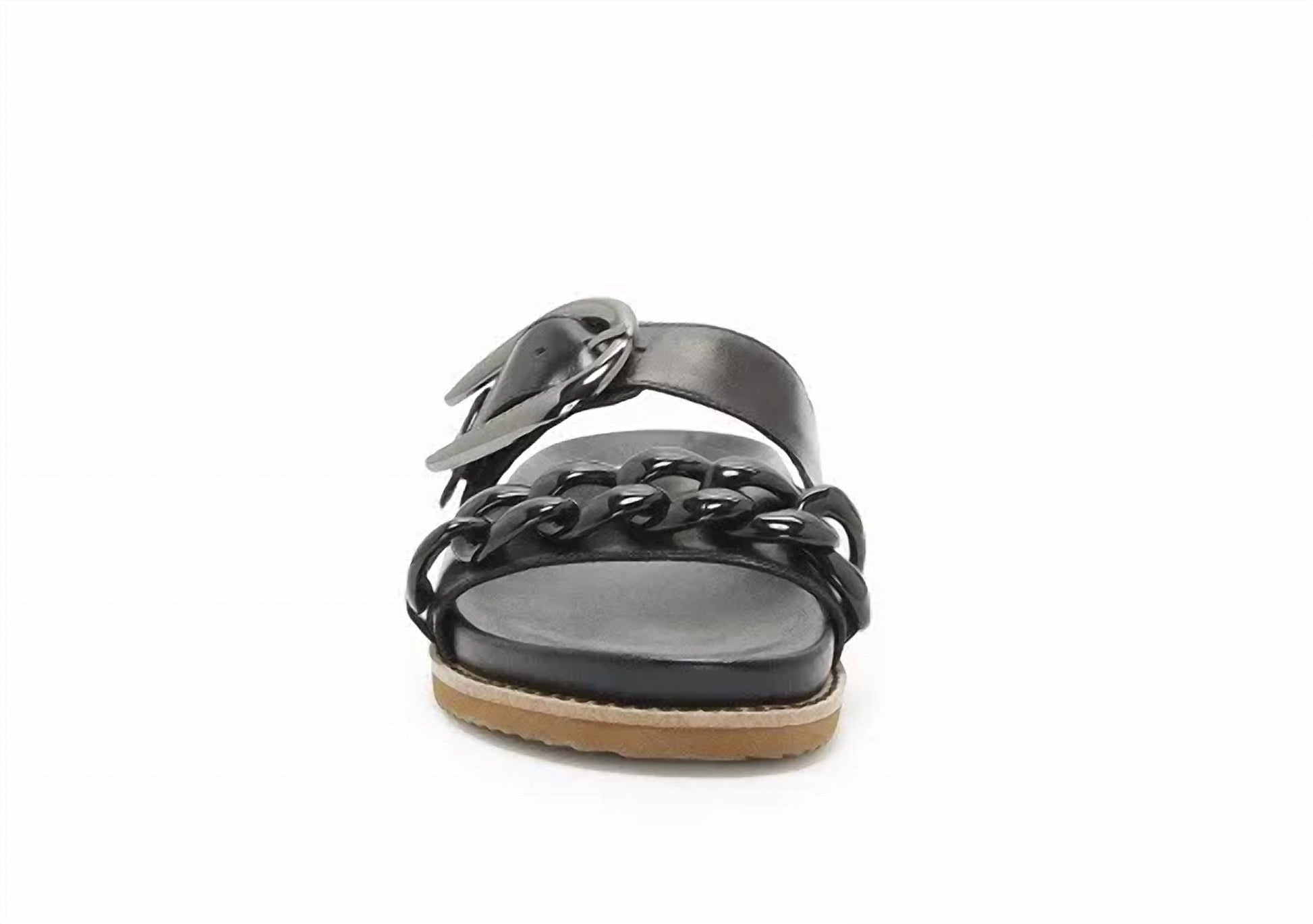 Crafted from luxurious leather, featuring a comfortable flat heel height of 0.75", the open toe design offers a chic yet minimalist aesthetic. With buckle design ideal for women seeking both comfort and elegance in their everyday footwear. Made from leather.