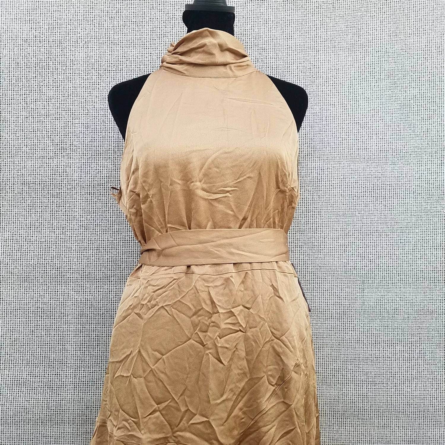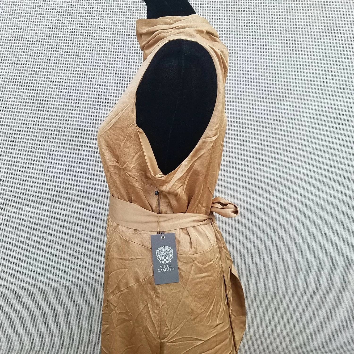 A cool twist on a classic style dress. Elevate your dinner party ensemble with the Formal Long Asymmetrical Dress by VINCE CAMUTO in an elegant Latte hue. This sleeveless, fit and flare dress is crafted from 100% Polyester, offering a sophisticated turtleneck silhouette. Measuring 44 inches at the middle and extending to 54 inches at the side, it exudes a graceful asymmetrical design. Perfect for spring celebrations, this solid-patterned dress pairs refined style with comfort for women who appreciate effortless elegance.