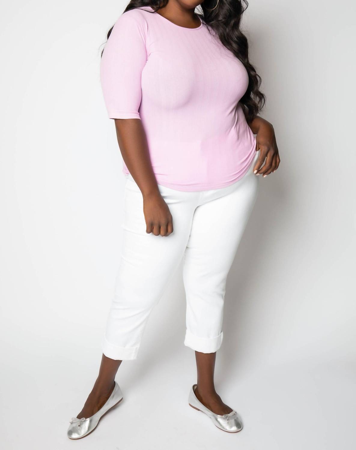 Pair this with your favorite jeans and slides for your next girls night out. Experience the effortless charm of the Vince Elbow Sleeve Crew Neck T-shirt in Petal Nectar, a must-have for any women's wardrobe. This solid blouse features elbow-length sleeves and a comfortable pull-on closure, perfect for everyday wear. Crafted from a luxurious organic stretch cotton blend, this tee promises durability and softness, sourced straight from Portugal. Care instructions include machine washing and laying flat to dry, ensuring ease in maintenance.