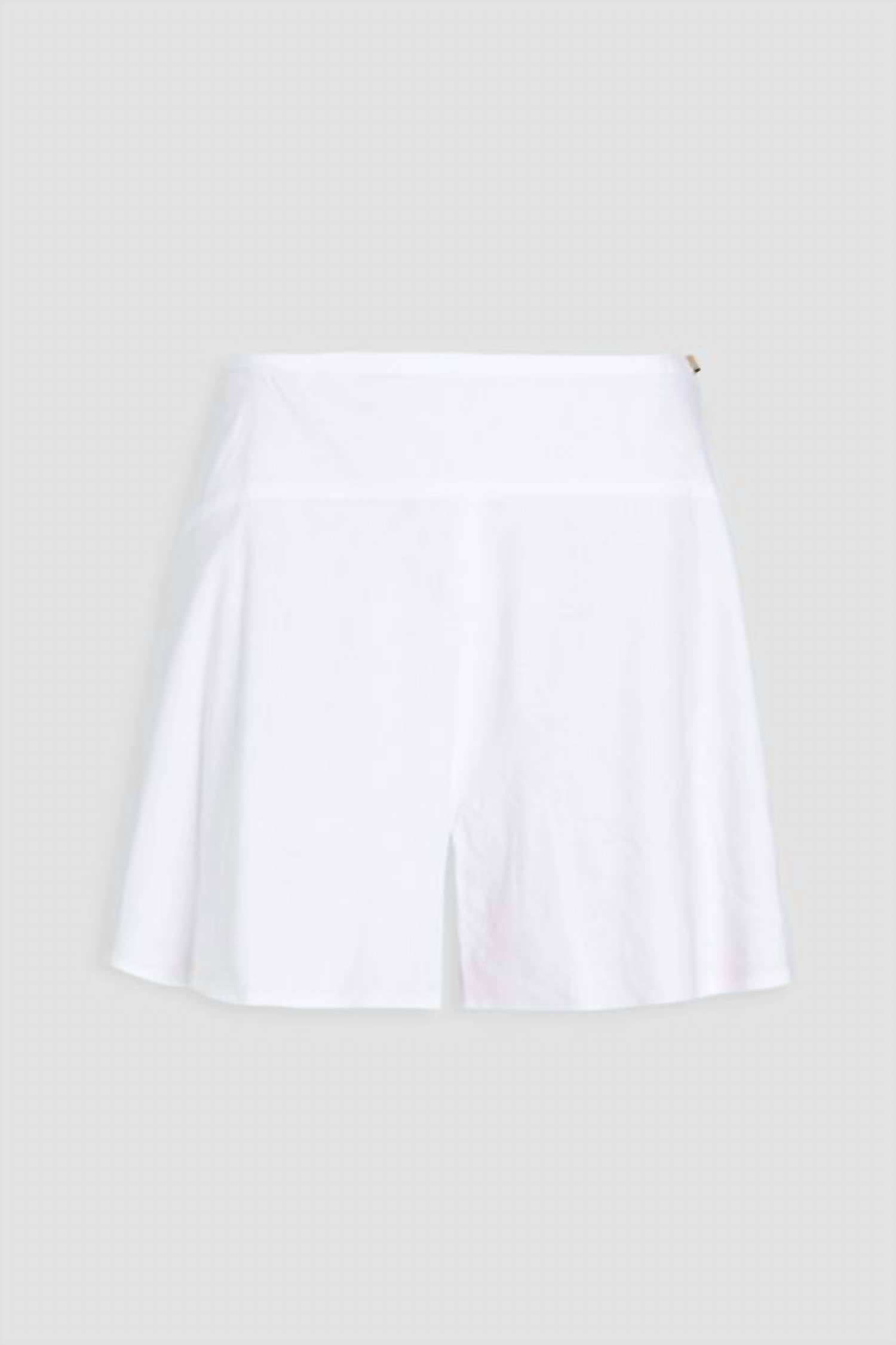 Tuck your favorite tee into these high-waist shorts for a more casual-cool feel. High-rise shorts made from a mid-weight linen-blend fabric consisting of 58% linen, 39% rayon, and 3% spandex. Designed with a tailored silhouette, they are fully lined for comfort and structure. Feature a side button and concealed zip fastening. The fabric has a non-stretch feel, offering a crisp, structured look.