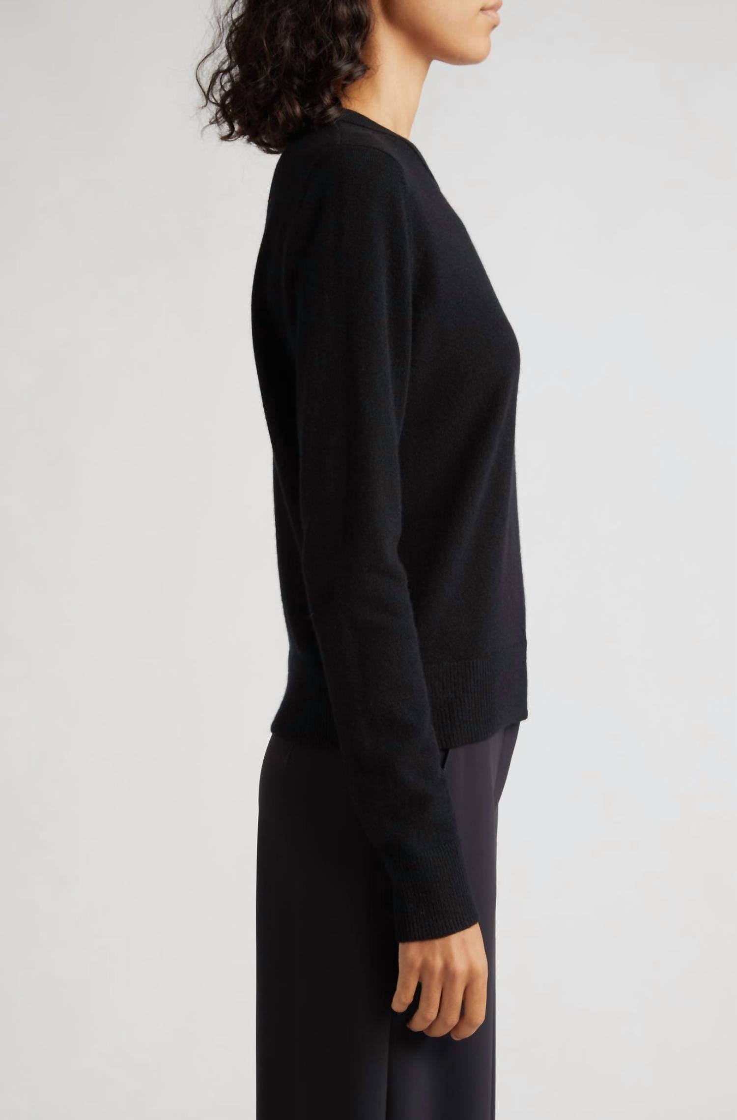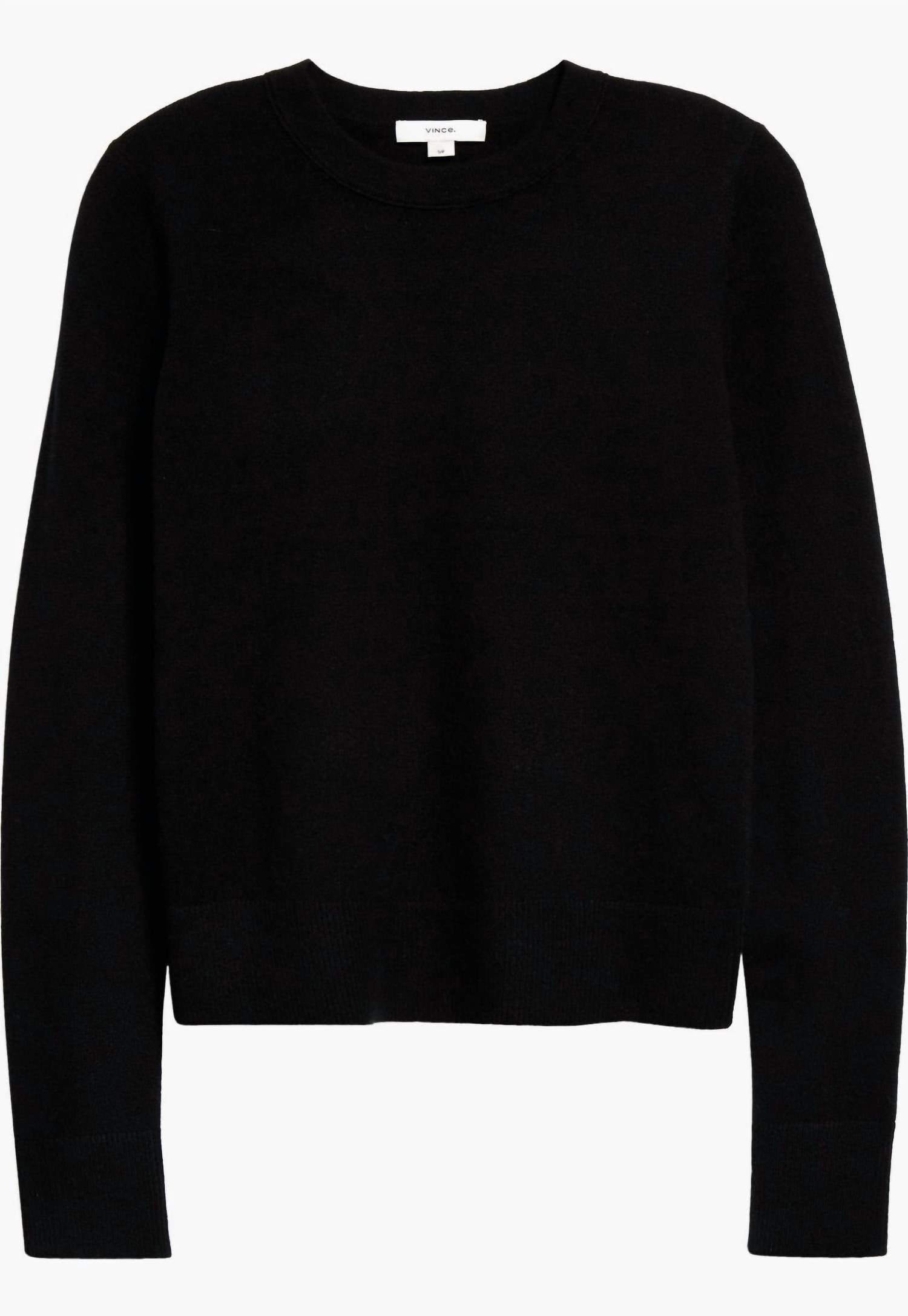 Throw this adorable cardigan over any cami or tank top. Introducing the Classic Crewneck Sweater by Vince, a minimalist essential for your fall wardrobe in a sophisticated solid black. This women's pullover features a crewneck and long sleeves, crafted from a luxurious blend of 90% wool and 10% cashmere for optimal comfort. It offers a convenient pull-on design and is imported for refined quality. Care instructions include hand washing and laying flat to dry, ensuring its enduring elegance.