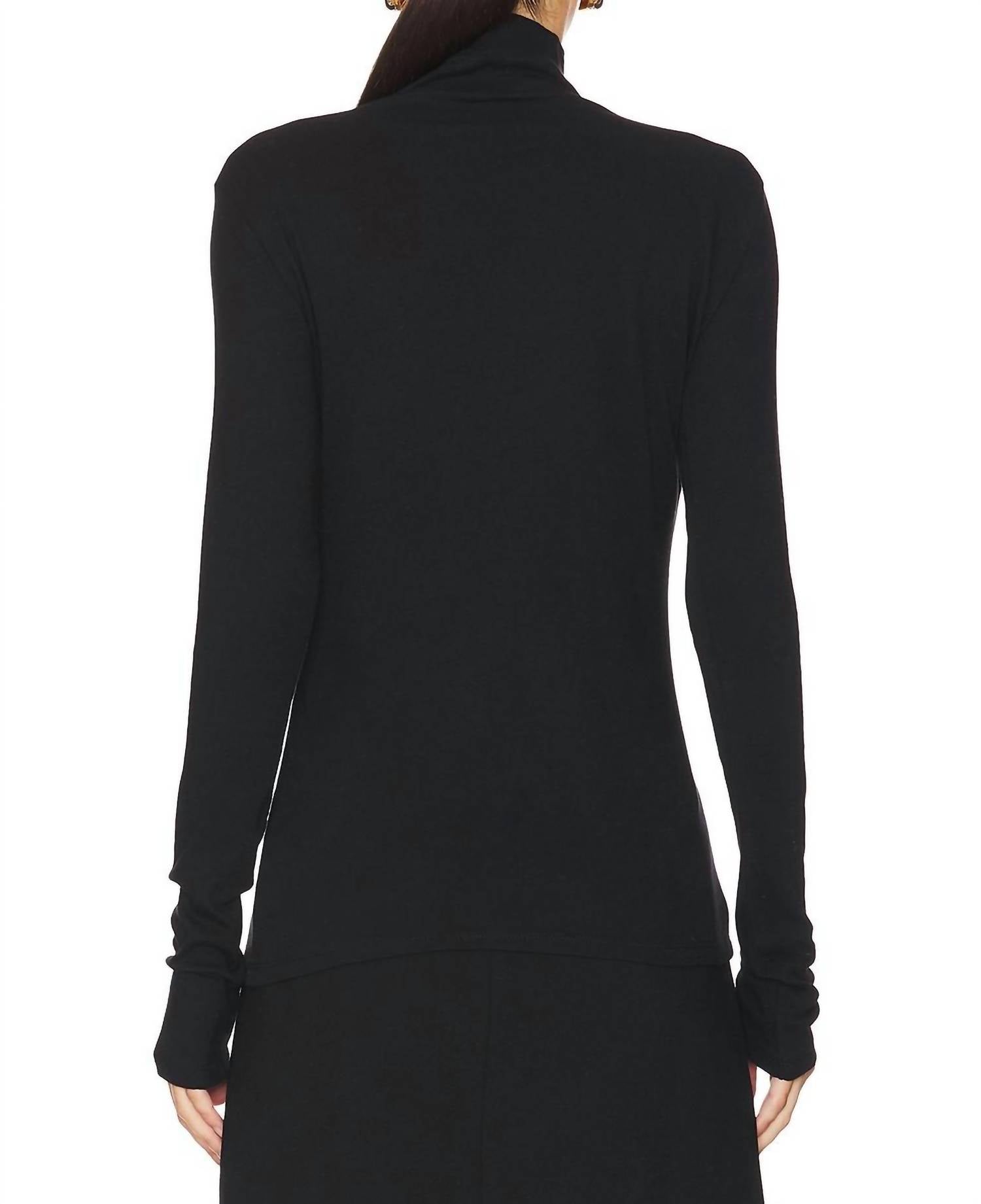 A long sleeve top you can wear with denim, skirts, well... just about anything! Elevate your wardrobe with the Essential Long Sleeve Turtleneck Top by Vince, crafted for sophisticated minimalism. Made in Peru, this sleek black top features a comfortable pull-on closure and a sleek 26.5" length to ensure a flattering fit. Composed of 100% Cotton, it offers a buttery soft stretch that feels luxurious against the skin. Care is effortless with machine wash in cold water, using non-chlorine bleach when needed, and tumble dry low for ease of maintenance.