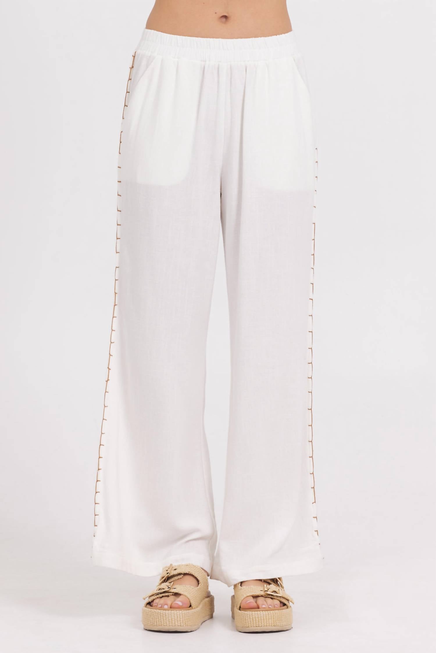 Vintage Havana - Washed Linen Wide Leg Pants With Whip Stitch