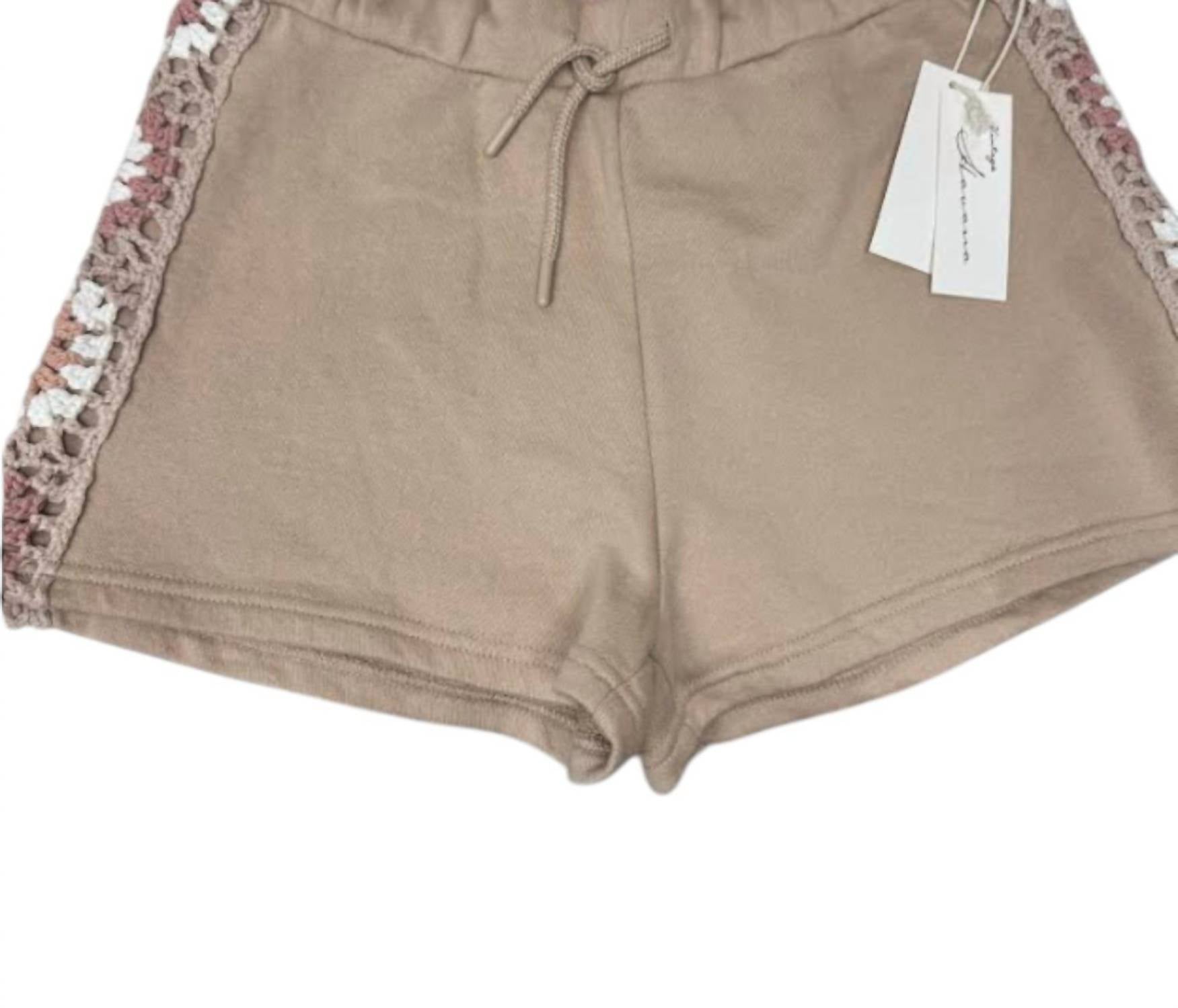 Fit to perfection, we love these high-waist shorts and you will too. Perfect for a casual summer look. High-waisted shorts, feature a relaxed fit. Standout detail is the decorative crochet trim running down the sides in a vibrant mix of colors, enhancing its boho chic appeal. Featuring a pull-on style with an elastic waistband and adjustable drawstring. Easy to style for a beach day. Care instructions suggest hand washing.